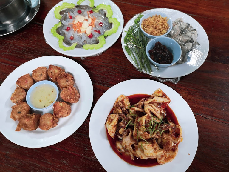 รายการอาหารคร่าวๆ คือ ต้มยำทะเล หมูยอดชะมวง น้ำพริกไข่ปู+ผักลวก ปลาทอดน้ำปลา ผัดผักกุ้ง ปูผัดผงกระหรี่