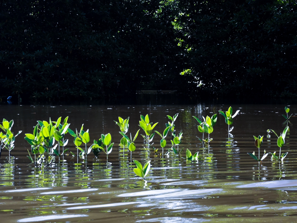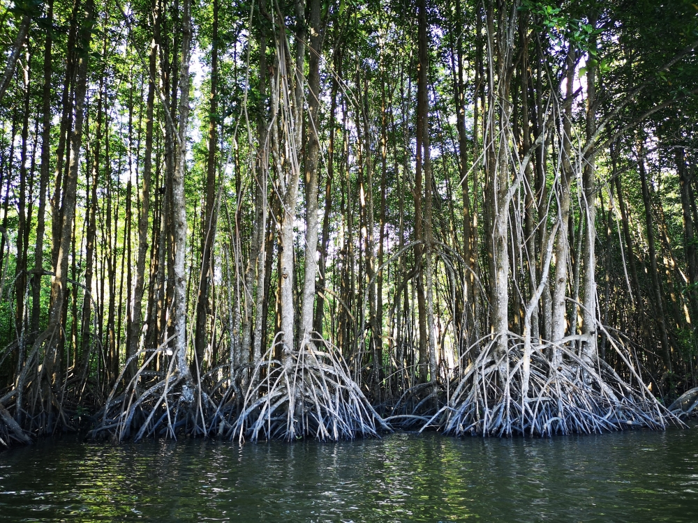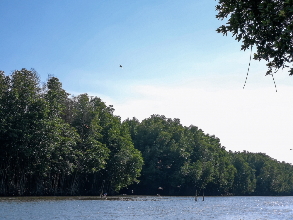 ข้างๆ ทางของเราก็จะเป็นพวกป่าชายเลนล้วนๆ ค่ะ สีเขียวเต็มไปหมด ธรรมชาติมากมาย