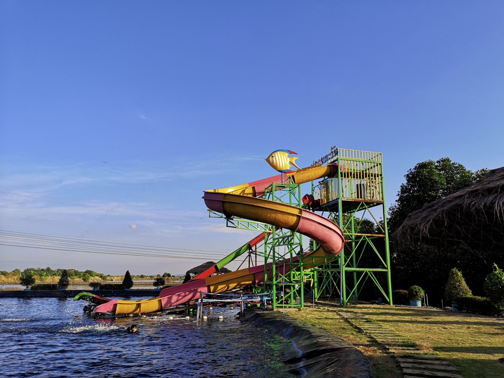 สำหรับเครื่องเล่น ก็คือจะอยู่ที่รีสอร์ทเลยนะคะ เล่นกันยาวๆ ไปค่ะ น้ำลึก 3 เมตร เด้อจ้า