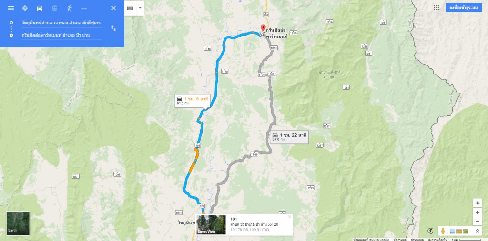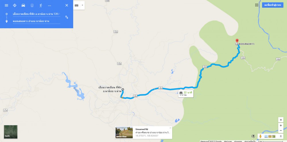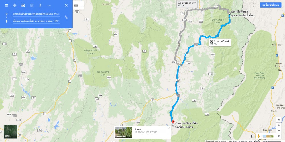 ผมตื่นตี 3 ครึ่ง อาบน้ำแต่งตัว ขนของขึ้นรถ "น้องขาว" ยาริส คู่ใจ คันนี้ พาผมตะลุยทริปหลายทริป เกือบทั่วภาคเหนือมาหมดแล้ว ถึงจะเล็ก ก็เล็กพริกขี้หนูนะเจ้าน้องขาว ^_^ เราเริ่มออกเดินทางตอนตี 4 ครึ่งโดยประมาณ ผ่านถนนวงแหวนรอบนอก ออกทางออกบางปะอิน มุ่งสู่ภาคเหนือ ด้วยถนนพหลโยธิน ผ่านจังหวัดอยุธยา อ่างทอง สิงห์บุรี ชัยนาท นครสวรรค์ จากนั้น ได้ขับรถไปทางถนนหมายเลข 117 มุ่งหน้าผ่านเมืองพิษณุโลก อุตรดิตถ์ แพร่ และมุ่งเข้าสู่ตัวเมืองจังหวัดน่าน ด้วยถนนหมายเลข 101 เราใช้เวลาเดินทางโดยประมาณ 11 ชั่วโมง รวมเวลาที่แวะพักทานข้าวระหว่างทาง ถึงตัวเมืองน่าน บ่าย 3 โมงกว่า โดยประมาณ