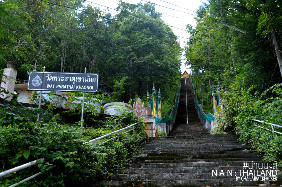 วัดพระธาตุเขาน้อย ตั้งอยู่บนดอยเขาน้อย สูงจากระดับน้ำทะเล ประมาณ 240 ม. ถือเป็นปูชนียสถานที่สำคัญ และเก่าแก่อีกแห่งหนึ่งของ จ.น่าน โดยหน้าวัดมีทางขึ้นเป็นบันไดนาค 303 ขั้น