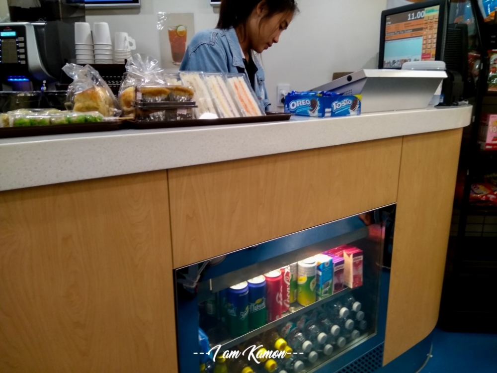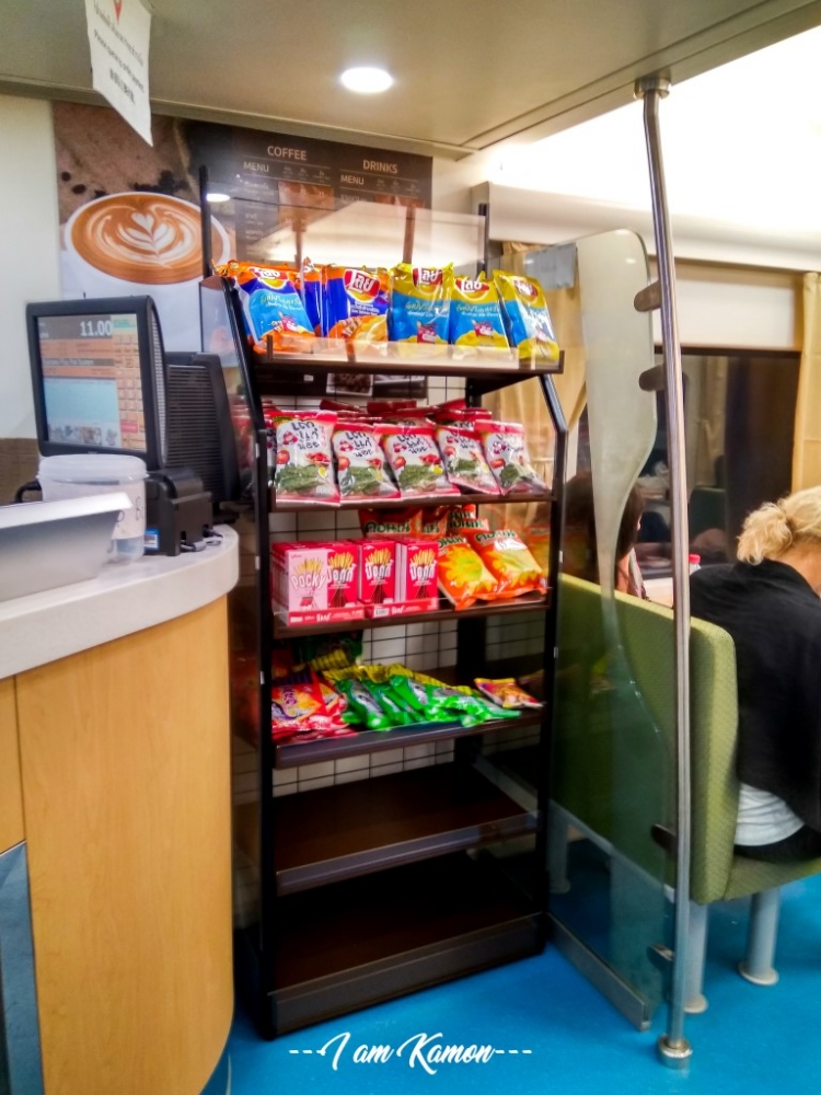 มีเครื่องดื่มชา กาแฟ ขนมปัง ขนมคบเคี้ยว และของใช้ส่วนตัวนิดหน่อยค่ะ