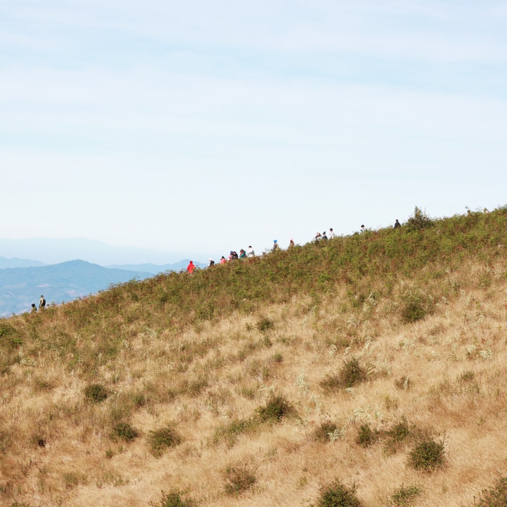 หลังจากเติมพลังแล้ว เราก็ออกเดินป่าค่ะ เนื่องจากคนเยอะมากและไกด์ไม่พอเนื่องจากตรงกับวันปีใหม่ม้ง (ไกด์เป็นม้งที่พูดไทยชัดมากและใจดี) จึงต้องจับกลุ่มกันขนาดใหญ่มากกลุ่มละ 20 คน โดยปกติเราจะให้ค่าไกด์ครั้งละ 200 บาท แต่ครั้งนี้คือ 20 คนช่วยกันหารก็เลยตกลงกันว่าจะจ่ายคนละ20 บาท ปรากฎว่า คุ้มมาก คือจ่ายแค่ 20 บาทแต่ได้เห็นวิวอลังการ