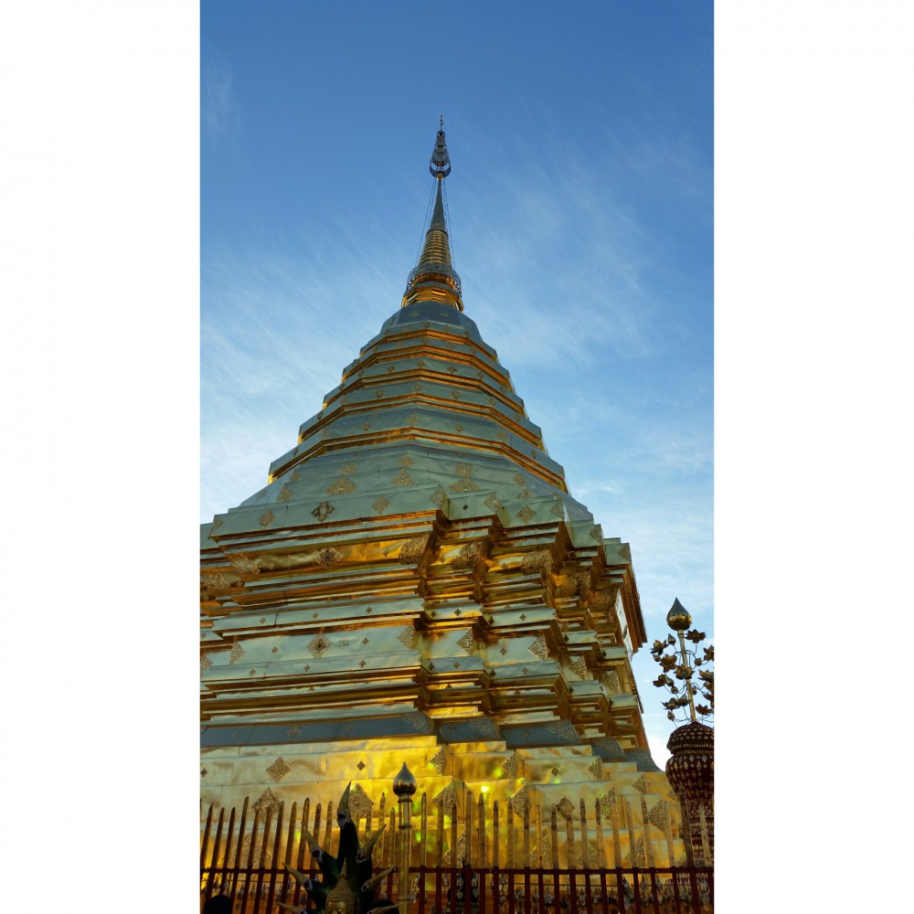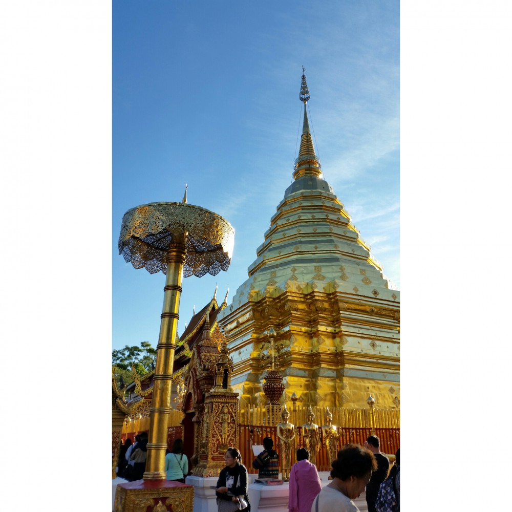 วันกลับแล้วจ้า ไม่มีอะไรมากเพราะตื่นเกือบจะสาย เรากลับไฟลท์ 10.40 เพื่อนบอกเห้ยต้องไปไหว้พระธาตุดอยสุเทพก่อน ไม่งั้นเหมือนมาไม่ถึง คือโค้งเยอะมากกกกก บิดมอเตอร์ไซต์ขึ้นกัน บางคนก็วิ่งขึ้นดอย บางคนก็ปั่นจักรยาน คือเหนื่อยมากนะ ข้างบนก็จะเป็นวิวตัวเมือง ได้แวะแค่แปปเดียวเพราะเดี๋ยวตกเครื่อง จุดมุ่งหมายหลักคือไหว้พระธาตุนะจ๊ะ