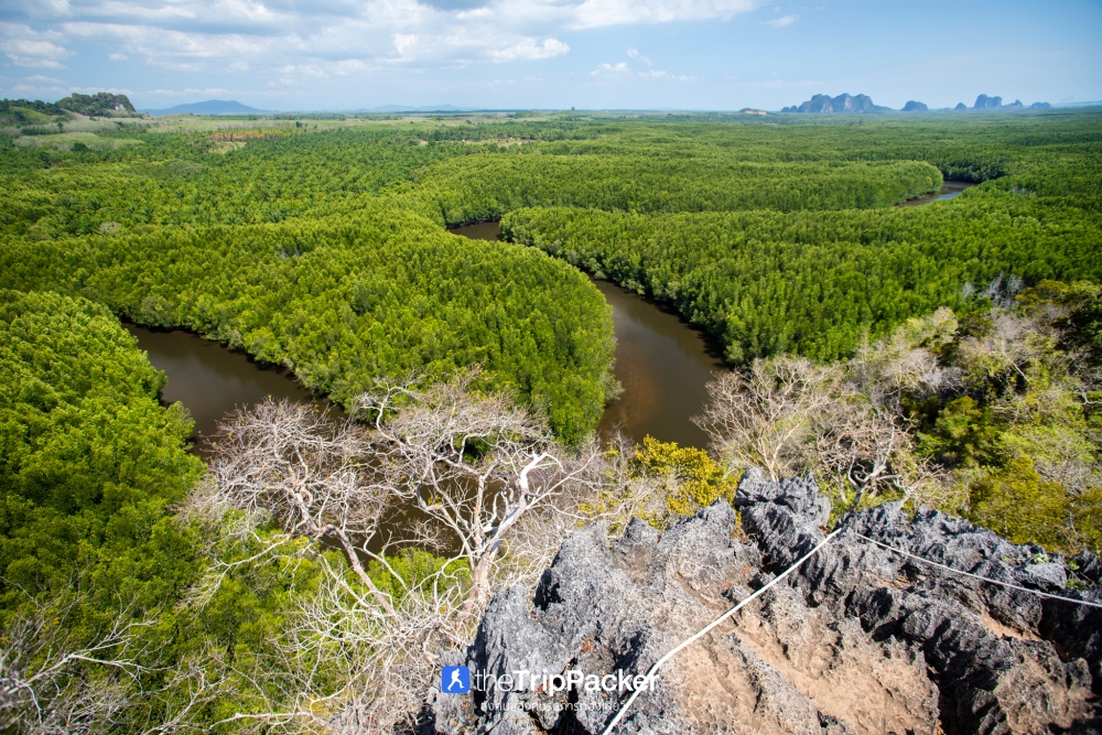 เขาหินปูนที่ผุดขึ้นมาท่ามกลางผืนป่าโกงกางอันกว้างใหญ่อย่างน่าอัศจรรย์ โดยทางชุมชนได้สร้างทางเดินศึกษาธรรมชาติเพื่อให้นักท่องเที่ยวได้สามารถขึ้นไปชมทัศนียภาพจากมุมสูงสุดอลังการ จากจุดจอดเรือถึงยอดเขามีระยะทางประมาณ 400 เมตร ความสูง 84 เมตร ใช้เวลาเดินประมาณ 20 นาที รูปแบบเส้นทางต้องออกแรงปีนป่ายไต่เชือกกันบ้างเล็กน้อย แต่เมื่อถึงข้างบนแล้วรับรองว่าหายเหนื่อยกันอย่างแน่นอน
