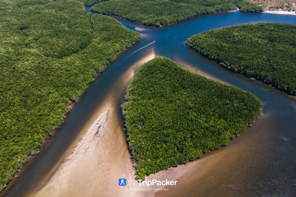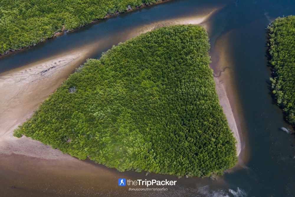 หากมองจากบนเรือบริเวณนี้ก็คงจะเหมือนกันผืนป่าโกงกางทั่วไปที่ตลอดสองข้างทางเต็มไปด้วยต้นโกงกางแน่นทึบ แต่หากมองจากมุมสูง จะเห็นผืนป่าโกงกางเขียวขจีที่ถูกแยกออกเป็นเกาะกลางโดยมีรูปร่างสามเหลี่ยมคล้ายรูปหัวใจ อันเป็นที่มาของชื่อ “เกาะหัวใจมรกต”