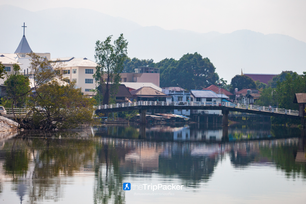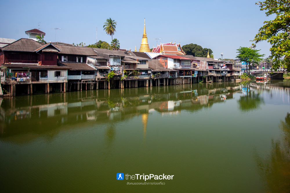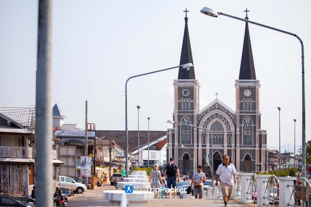 จากบริเวณลานกว้างด้านหน้าโบสถ์ เราเดินข้ามแม่น้ำจันทบุรี ผ่านสะพานนิรมล จากจุดนี้เราสามารถมองเห็นความสวยงามของบ้านเรือน และอาคารเก่าแก่ริมน้ำได้อย่างชัดเจน เมื่อข้ามมาแล้วเราก็จะมาอยู่ในย่านที่ชาวบ้านเรียกกันว่า ตลาดล่าง ทางเดินท่องเที่ยวในชุนชนริมน้ำ มีระยะทางสั้น ๆ เดินง่าย ไม่ซับซ้อน แต่หากใครกลัวหลง หรืออยากรู้พิกัดร้านเด็ด หรือจุดไฮไลท์ต้องแวะ ก็ลองดูแผนเพื่อเก็บข้อมูลก่อนได้