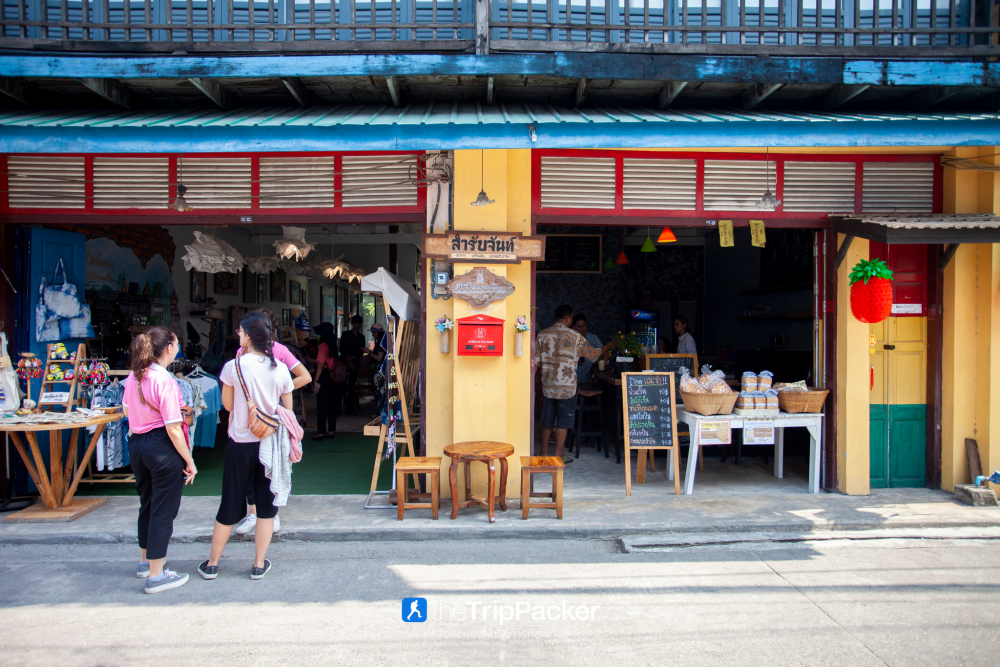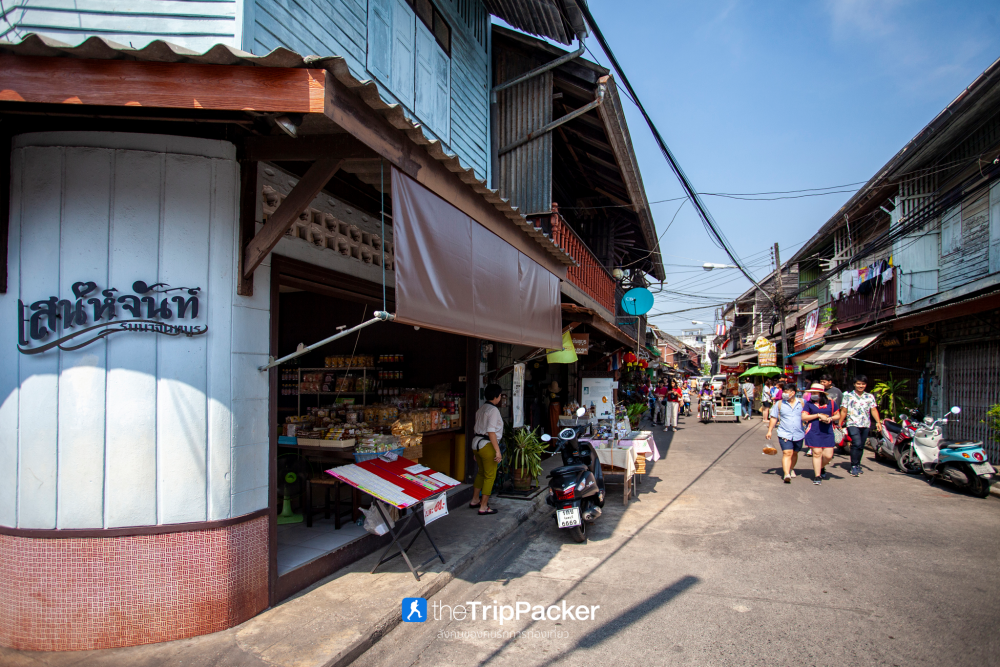 ร้านรวงเก่าแก่ก็มีมากมาย อย่าง ร้านขายยาโบราณจังอวนกัน ที่เปิดขายมานานกว่า 100 ปี ใกล้ ๆ บ้านหลวงราชไมตรี ซึ่งอดีตเคยเป็นบ้านพักของท่านหลวงราชไมตรี บิดาแห่งยางพารา ภาคตะวันออก ที่ปัจจุบันได้เปิดให้เข้าชมความงดงาม และยังเปิดเป็นที่พักสำหรับนักท่องเที่ยวอีกด้วย นอกจากนี้ที่เห็นจะดึงดูดนักท่องเที่ยวเป็นอย่างมาก นั่นก็คือ อาหาร ที่นี่เต็มไปด้วยร้านเก่าแก่ที่สืบทอดสูตรความอร่อยกันมาหลายต่อหลายรุ่น บางร้านก็เป็นเมนูที่หาทานที่อื่นไม่ได้ต้องมาที่ชุมชนริมน้ำจันทบูรเท่านั้นถึงจะได้กิน บางร้านก็ได้รับความนิยมจากทั้งนักท่องเที่ยว และคนในชุมชนเป็นอย่างมากซึ่งจะสังเกตได้จากคิวที่มีแถวยาวเหยียดนั่นเอง ขนมที่แปลกทั้งหน้าตา และชื่อ ก็มีให้เลือกชิมตลอดทาง