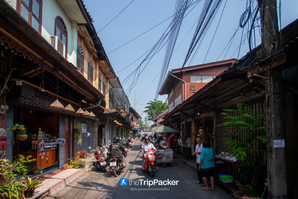 เราเดินไปตามถนนเล็ก ๆ ที่สองข้างทางเรียงรายไปด้วยอาคารบ้านเรือนไม้สลับปูนที่บางหลังยังคงรักษาสภาพความเก่าแก่ของตัวตึกเอาไว้ บางหลังก็ทำการปรับปรุงให้ดูใหม่แต่ก็ยังคงกลิ่นความคลาสสิคไว้อย่างเดิม ตามผนังตึกก็ถูกเพิ่มสีสัน และความสนุกสนานด้วยการเล่าเรื่องราวผ่านงานอาร์ต รวมไปถึงวิถีชีวิตของชุมชนริมน้ำที่มีมาตั้งแต่อดีตก็ถูกถ่ายทอดออกมาผ่านงานสถาปัตยกรรม และสิ่งปลูกสร้างได้อย่างมีเสน่ห์