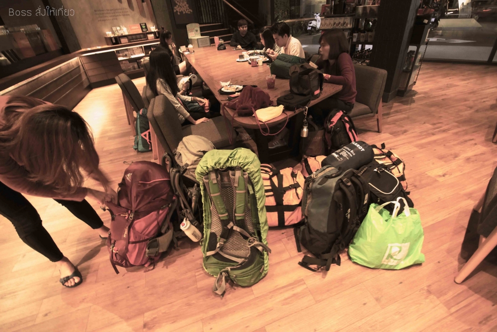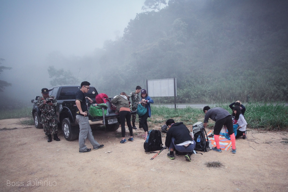 ประมาณ 9 โมงนิดๆ เราก็มาถึงจุดเริ่มเดินกันแล้ว แบ่งอาหารกลางวัน และจัดกระเป๋ากันอีกซักรอบ