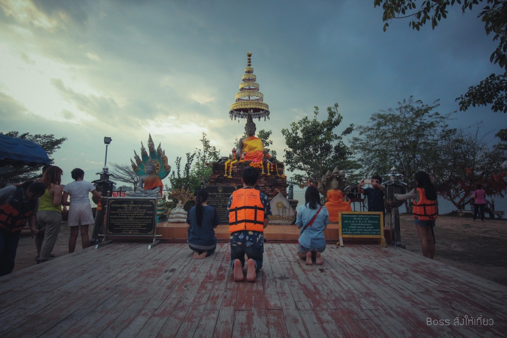 ซึ่งเป็นเกาะอยู่กลางกว๊าน กลางรึป่าวไม่รู้ แต่ต้องนั่งเรือออกไป ซึ่งเรือไม่ใช่เรือยนต์นะ เรือแจวจ้า