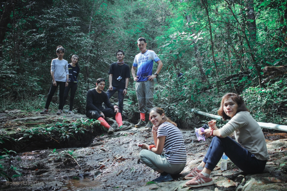 พอประมาณเที่ยงๆ พวกเราก็มาถึงน้ำตกสามโชค ก็นั่งพักผ่อนล้างหน้าล้างตาเพราะ เหลือระยะทางอีกนิดหน่อยก็ถึงจุดรถมารับแล้วและเป็นทางราบ สบายสิครับงานนี้ 555 หลังจากที่พักและถ่ายรูปกันพอใจแล้วก็ออกจากป่ากันดีกว่า
