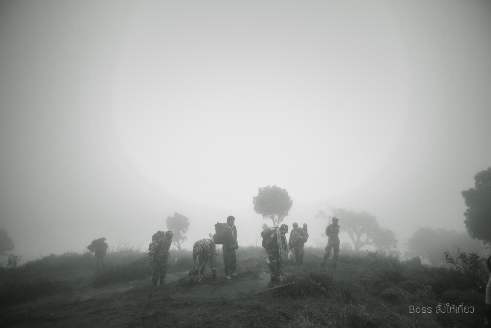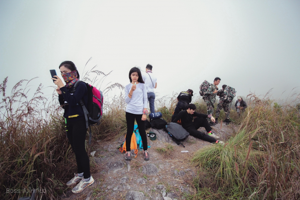 ก็ยังเดินๆ พักๆ กันเป็นระยะ ระหว่างเดินก็จะเจอหมอกจางๆ สลับกับสภาพอากาศครึ้มๆ