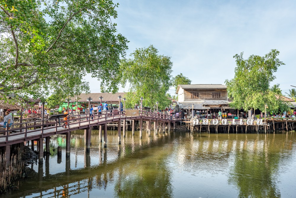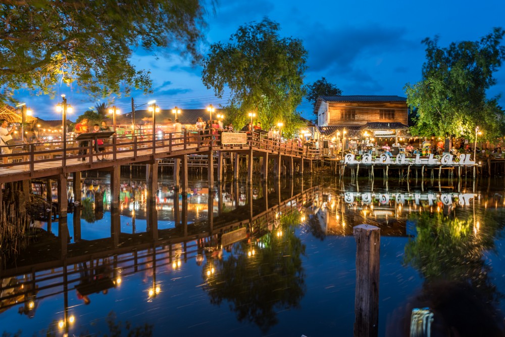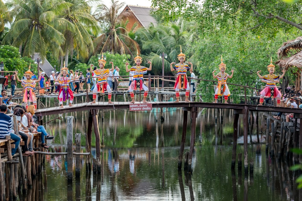 ความไม่ธรรมดาของตลาดริมน้ำแห่งนี้คือกลิ่นอายของวัฒนธรรมท้องถิ่น เพราะนอกจากสินค้าหลากหลายที่นำมาวางขายกันอย่างครึกครื้นแล้ว ยังมีเวทีหมุนเวียนแสดงศิลปะท้องถิ่นสร้างสีสันอยู่ตลอดเวลา