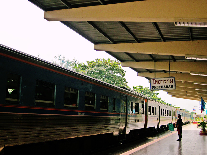 พอรถไฟวิ่งมาเรื่อยๆ ถึงสถานีนี้ให้เตรียมตัวนะ อีกสถานีเดียวก็ถึงโพธารามแล้ว รถจะจอดแป๊บเดียว