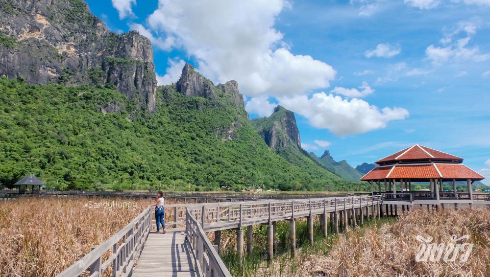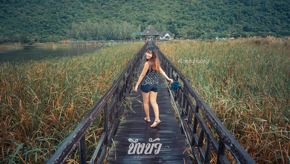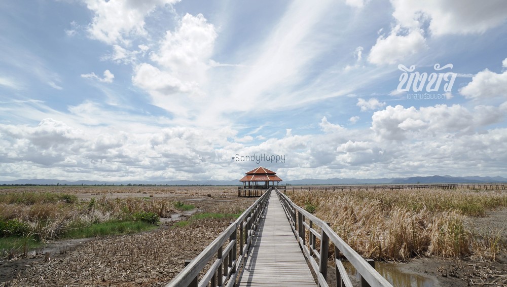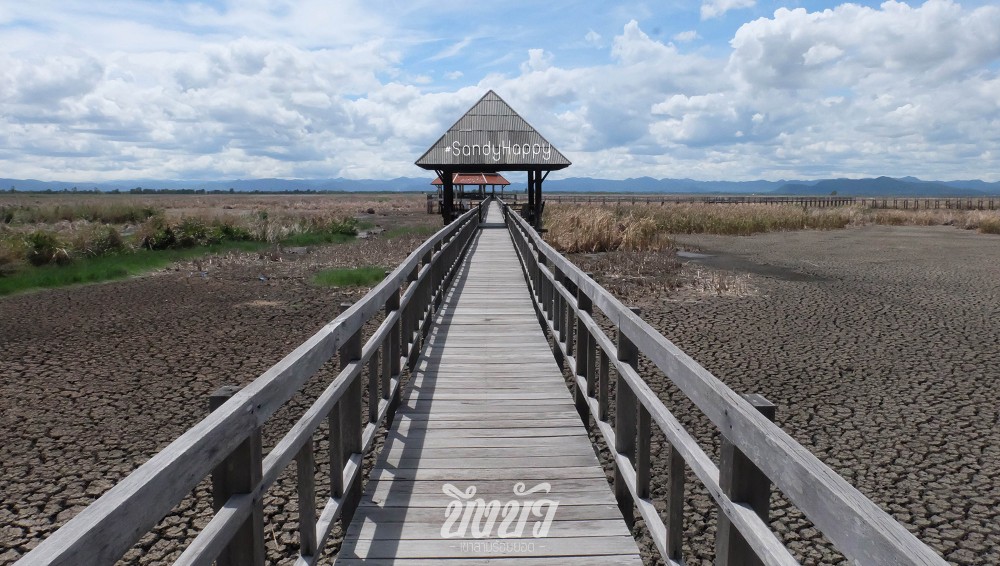 ที่นี่จะมีสะพานเดินไม้ยกระดับยื่นเข้าไปในบึง ให้เราเดินศึกษาระบบนิเวศน์ ดูพืนพันธ์ต่างๆ และสัตว์น้ำในบึงได้อย่างใกล้ชิด ดูไม้น้ำ ดูนก ดูปลา ไปได้ตลอดทาง สะพานนี้มีระยะทางยาวถึง 1,500 เมตร (ไปมา2ครั้งไม่เคยเดินจนสุดเลย เดินไปครึ่งทาง ก็กลับ )