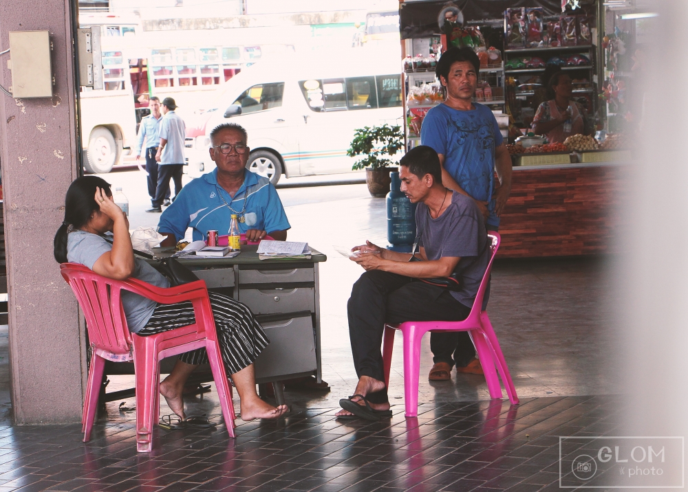 10:30 ลุงก็มาส่งเราลงตรงแยกโป่งปัด เรามานั่งรอรถประจำทางคันสีน้ำเงินตรงศาลา ใกล้ๆ บริเวณป้อมตำรวจ