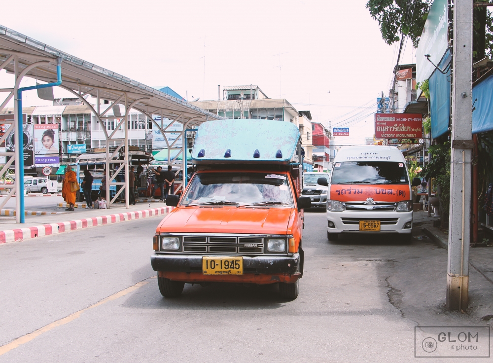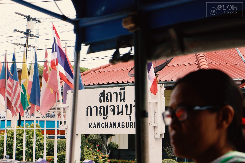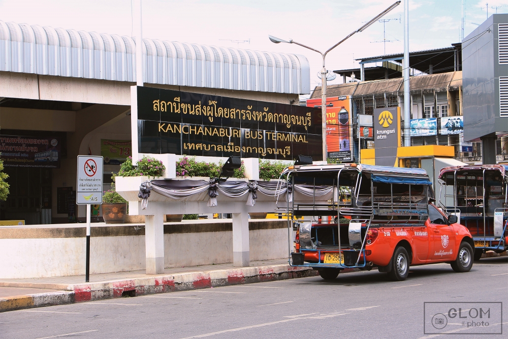 เย้เย้ … เรามาถึงสถานีรถไฟกาญจนบุรีกันแล้ว มาถึงก็เวลาประมาณ 10 โมงกว่าๆ ได้ค่ะ เราก็หยิบกระเป๋าเป้แสนรัก แล้วรีบลงจากรถไฟ เพื่อจะไปหารถต่อไปที่สถานีขนส่งกาญจนบุรีค่ะ และเราก็เจอรถสองแถวแดงจอดอยู่ตรงสถานีรถไฟกาญเลย ก่อนจะขึ้นเราก็ต้องถามน้าคนขับให้แน่ใจก่อนนะว่าไปสถานีขนส่งกาญรึเปล่า ถ้าไปจะรอช้าทำไม รีบขึ้นไปนั่งบนรถเลยค่ะ..