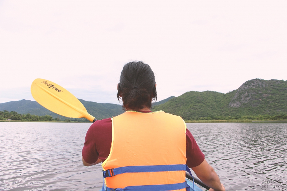 ที่นี่มีให้บริการพายเรือคายัค และเรือแจวฟรีนะคะ พอตกช่วงบ่ายๆ เย็นๆ เราก็ไม่รอช้า เดินไปหยิบอุปกรณ์ ทั้งไม้พาย และเสื้อชูชีพ ส่วนโซนอุปกรณ์พายเรือจะอยู่ตรงที่รับประทานอาหารเช้าเลยค่ะ