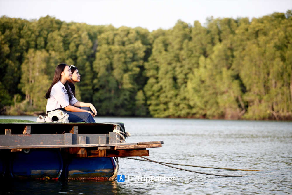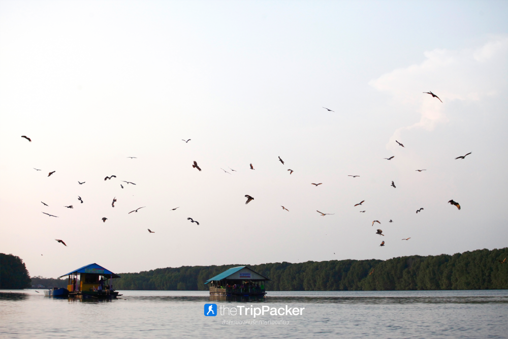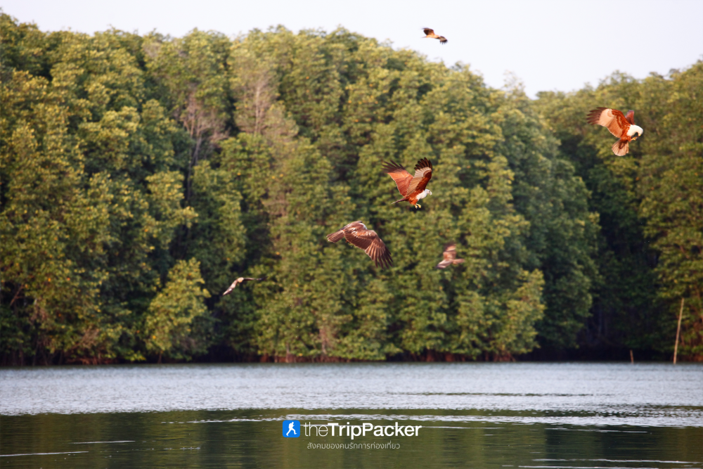 เมื่อเราลงแพกันเรียบร้อย เรือลำน้อยเริ่มลากแพของเราไปเรื่อยๆ ระหว่างทางเราจะได้ชมวิวสวย ๆ ของแนวป่าชายเลนสองข้างทาง มีนกน้ำ บ้างก็ปลาเล็กปลาน้อย และเจ้าถิ่นมากมายที่คอยทักทายนักท่องเที่ยวอยู่เป็นระยะ ๆ นั่งรับลมชมวิวไปเพลิน ๆ ราว 15 นาที เราก็มาถึงจุดที่ฝูงเหยี่ยวแดงจะลงมากินอาหารกันแล้ว