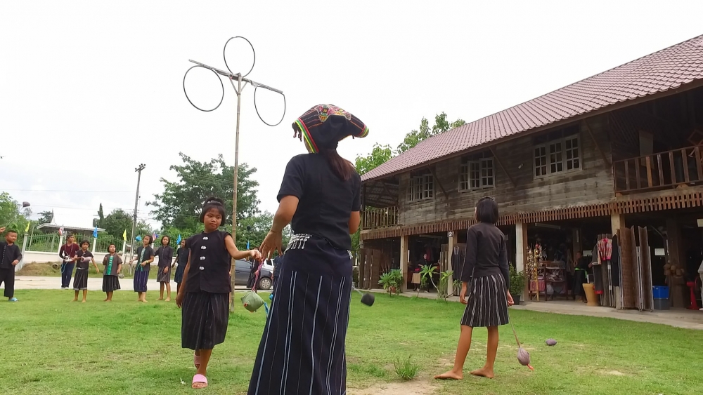 ต่อจาก “มะกอนลอดบ่วง” ก็ได้เวลาประลองฝีมือกับเด็กๆ ด้วยการฝึกทำ “ตุ้มนก ตุ้มหนู”