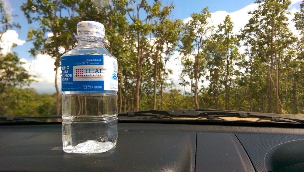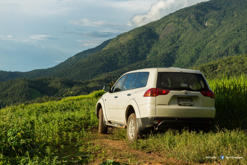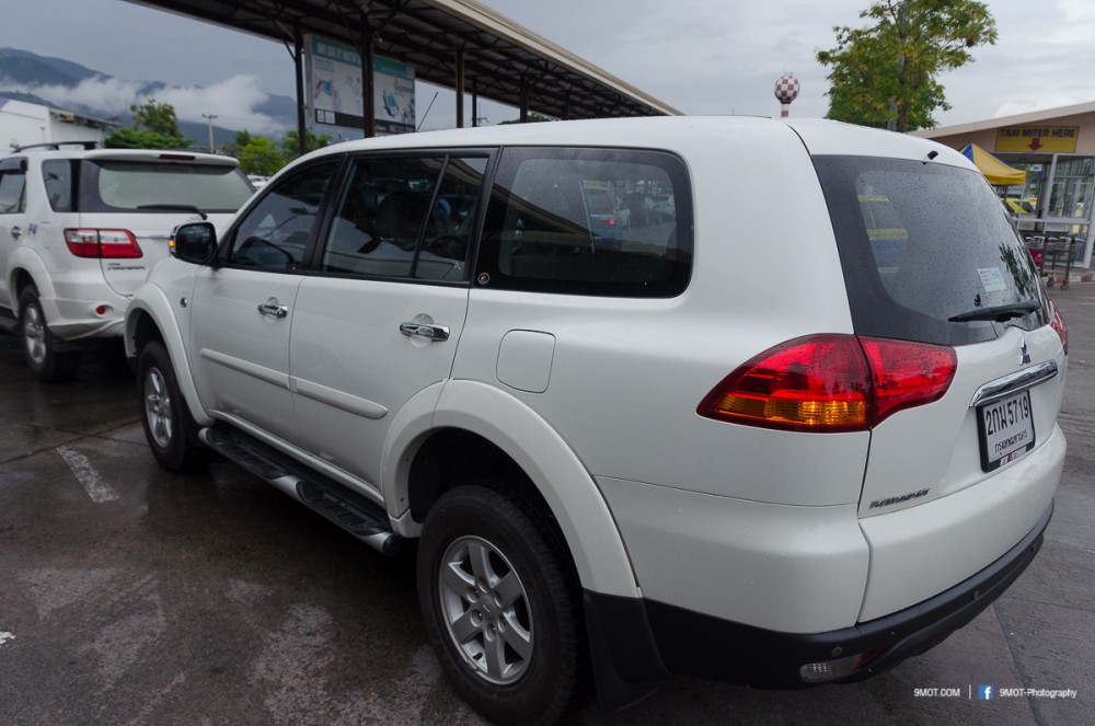 เมื่อเดินทางถึงเชียงใหม่ก็ติดต่อรับรถที่ counter ของ Thai Rent A Car ซึ่งหาง่ายครับ เดินออกจากประตูผู้โดยสารขาเข้ามองมาทางซ้าย เห็นเด่นชัดอยู่ใกล้กับประตูทางออกที่ 1 เลย ... จัดการเอกสารต่าง ๆ เรียบร้อย รับน้ำดื่มกับพวงกุญแจที่ระลึกเสร็จ รถก็มาถึงพอดี ... ผมถ่ายภาพสภาพรถไว้อ้างอิงเหมือนที่ทำเสมอ เผื่อเป็นหลักฐานในกรณีที่เกิดปัญหา ทั้งนี้รถของทริปนี้เป็น Mitsubishi Pajero Sport เพราะทราบมาว่าเส้นทางไปสู่นาขั้นบันไดบางจุดของแม่แจ่มนั้นลำบากจนไม่สามารถนำรถเก๋งซีดานไปได้ ... โดยรถคันที่ได้สภาพค่อนข้างใหม่ทีเดียวครับ (แอบกลัวว่าตรูจะเอารถเขาไปเจิมป่าวว้า 555)