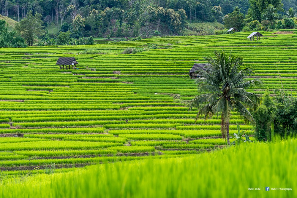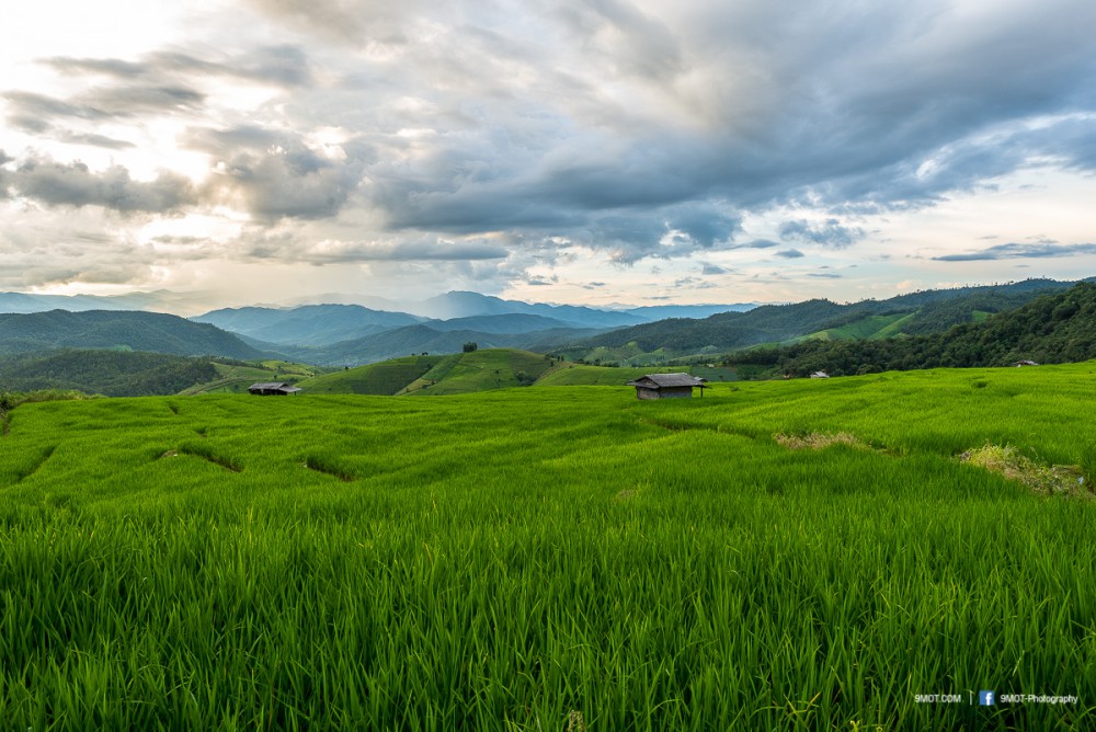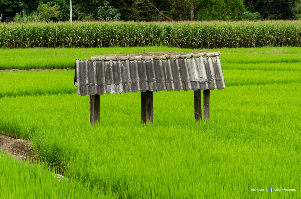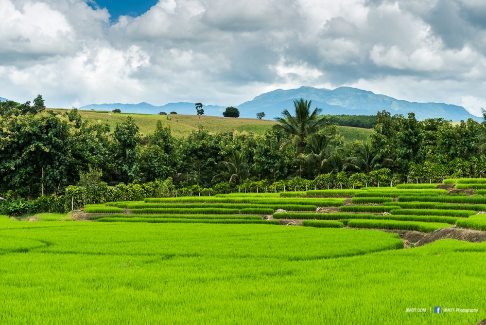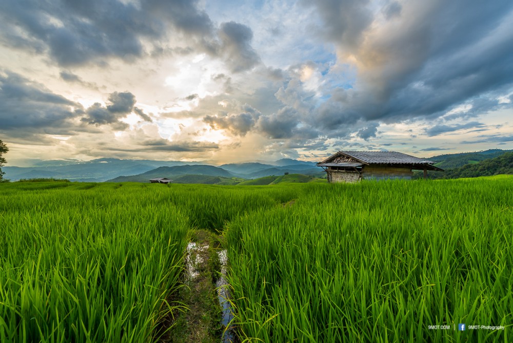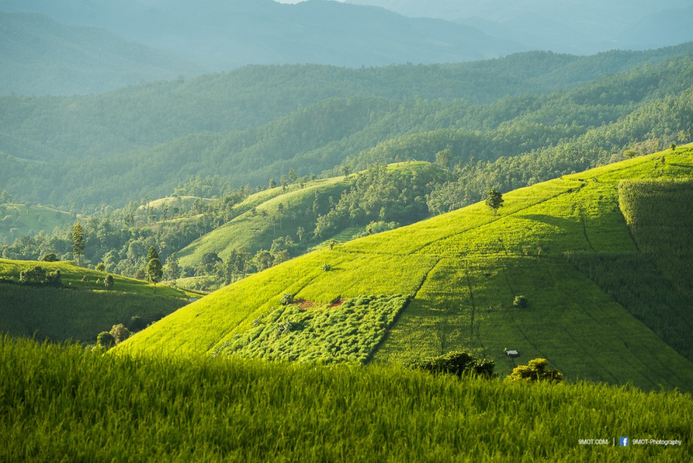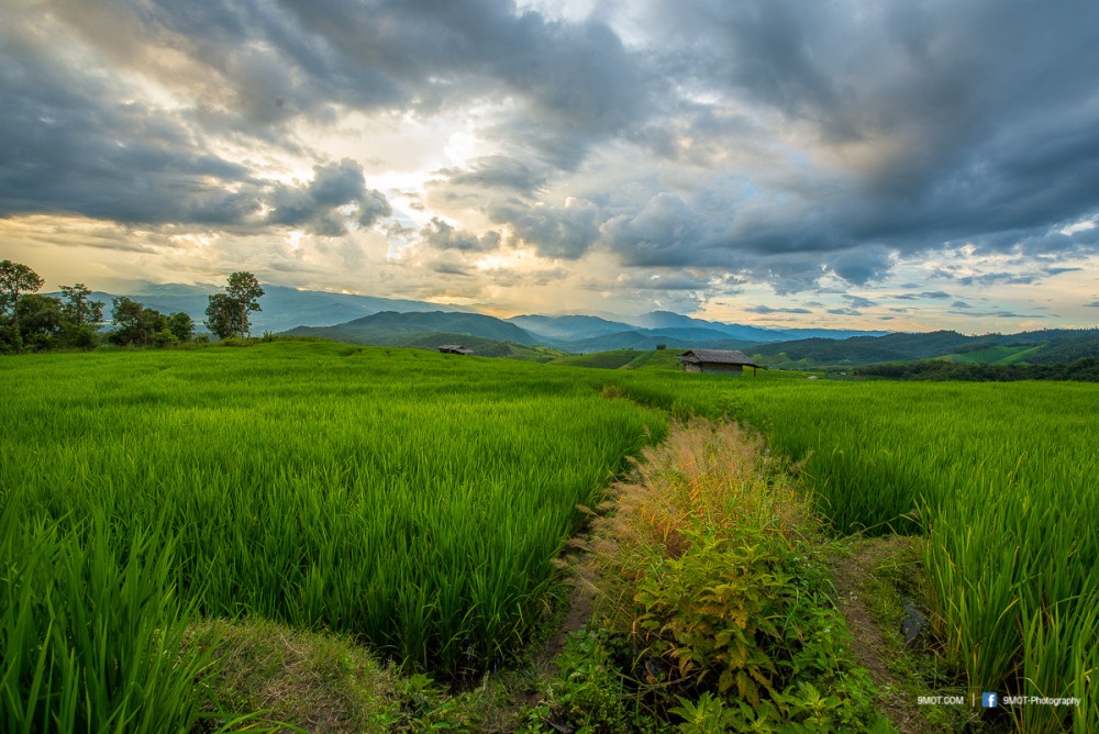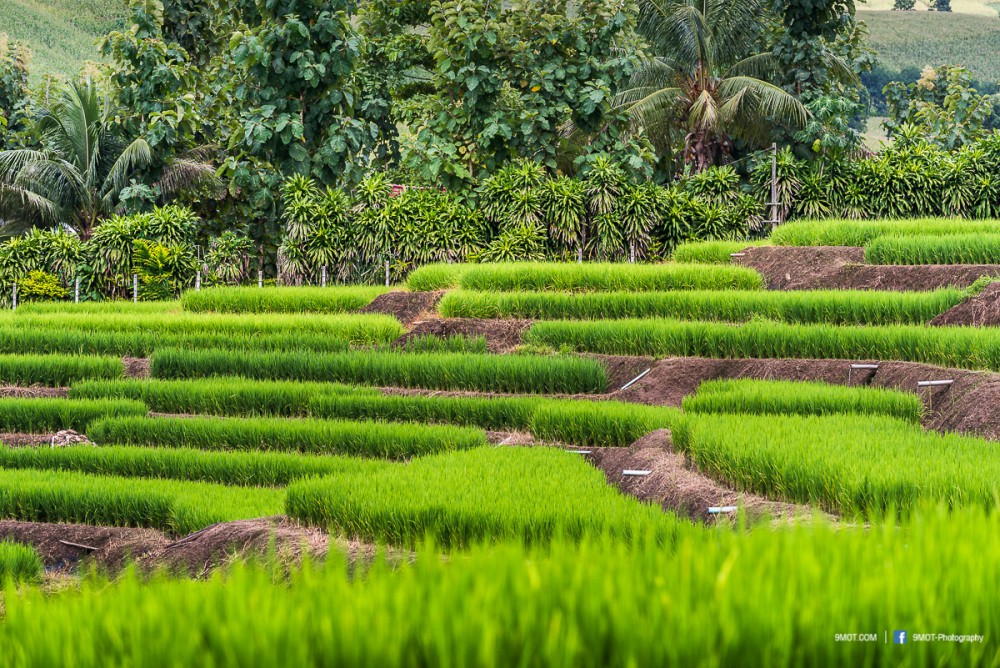 ช่วงเย็นแบบนี้การถ่ายภาพจะย้อนแสงนิด ๆ ทำให้นาข้าวยิ่งดูสวยงามขึ้น เพราะแสงบางส่วนที่ผ่านใบข้าวมานั้นจะทำให้เกิดสีเขียวอ่อนอมเหลืองงดงามมาก ดังนั้นหากต้องเลือกว่าจะมาถ่ายภาพช่วงเวลาไหน ผมอยากแนะนำให้มาช่วงบ่าย-เย็นครับเพราะจะได้แสงที่สวยงามหากมองจากบนถนน ถ้าโชคดีเกิดแสงเทพเป็นลำในช่วงเย็นด้วยล่ะก็ยิ่งงดงามขึ้นไปอีก ..