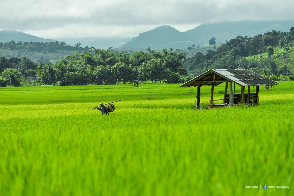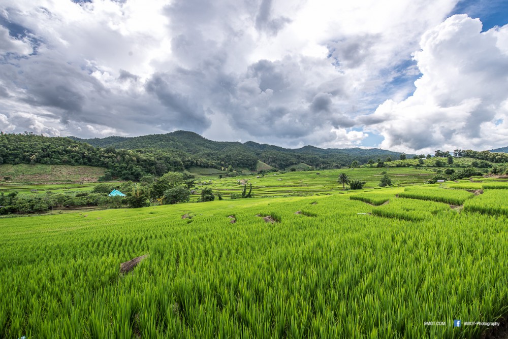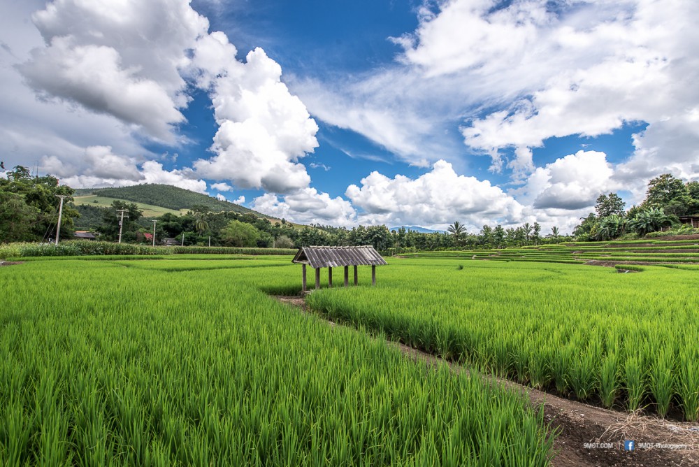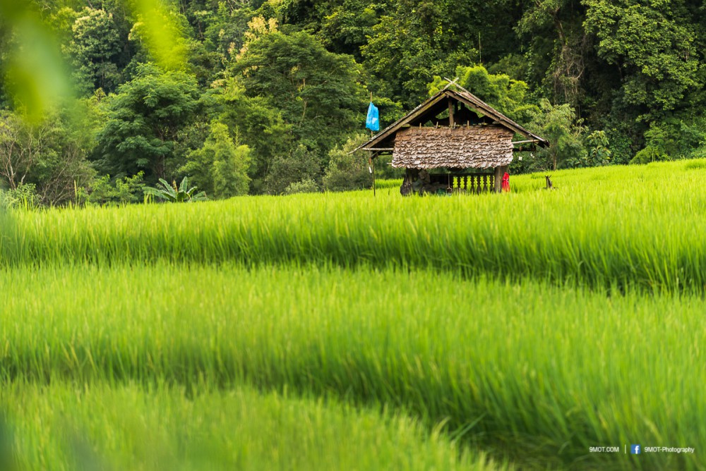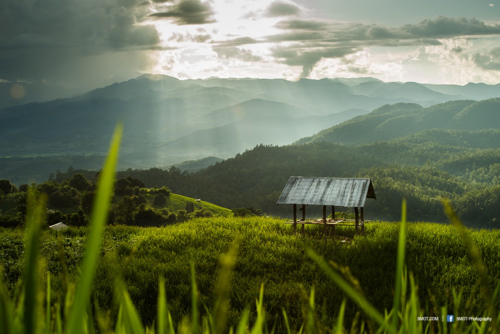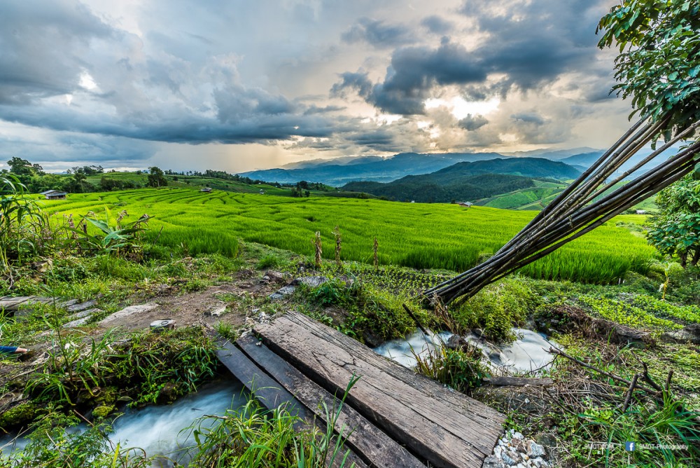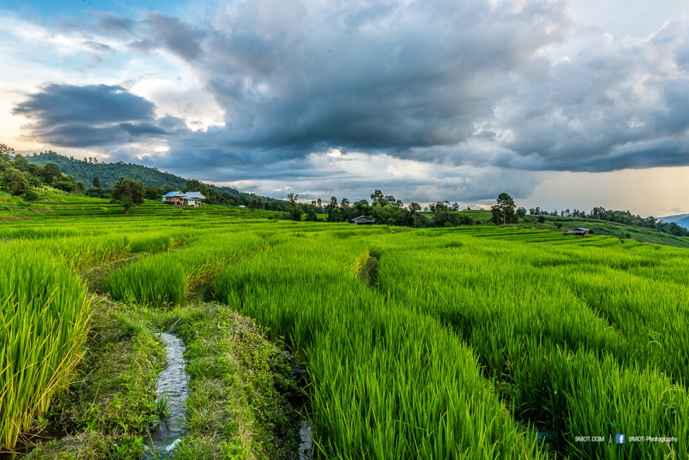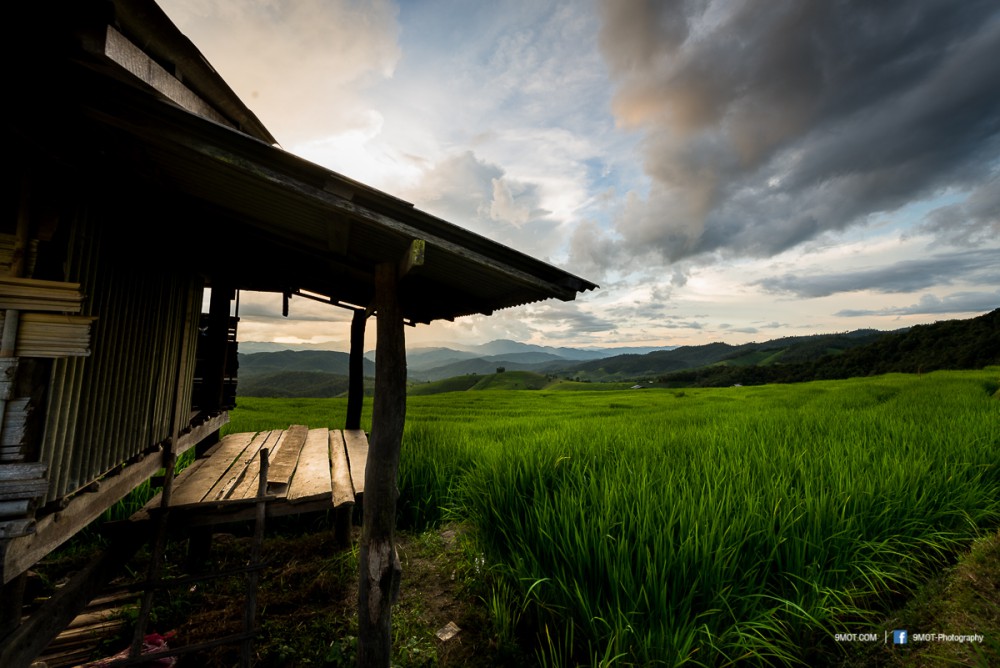 ช่วงเย็นแบบนี้การถ่ายภาพจะย้อนแสงนิด ๆ ทำให้นาข้าวยิ่งดูสวยงามขึ้น เพราะแสงบางส่วนที่ผ่านใบข้าวมานั้นจะทำให้เกิดสีเขียวอ่อนอมเหลืองงดงามมาก ดังนั้นหากต้องเลือกว่าจะมาถ่ายภาพช่วงเวลาไหน ผมอยากแนะนำให้มาช่วงบ่าย-เย็นครับเพราะจะได้แสงที่สวยงามหากมองจากบนถนน ถ้าโชคดีเกิดแสงเทพเป็นลำในช่วงเย็นด้วยล่ะก็ยิ่งงดงามขึ้นไปอีก ..