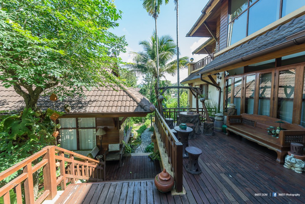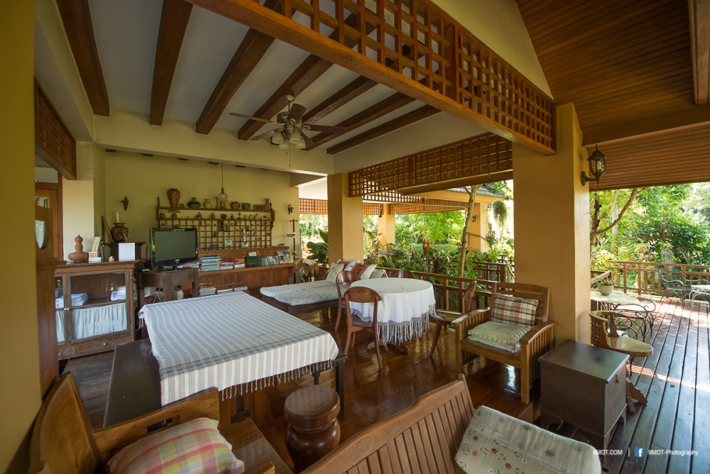จะว่าไป “เฮือนแรม แจ่มเมือง” ก็เป็นที่พักสไตล์ Bed & Breakfast แบบที่ผมเลือกใช้เสมอตอนไปเที่ยวต่างประเทศ ลักษณะเป็นการแบ่งห้องให้เช่า ของที่นี่ก็ดูเป็นสัดส่วนดี ห้องที่ผมพักจะแยกออกจากเรือนหลักของเจ้าของบ้าน โดยมีทางเดินไม้เชื่อมต่อกัน บรรยากาศเป็นบ้านที่ตกแต่งอย่างร่มรื่น ดูสะอาดสะอ้าน แต่ไม่มีทีวีให้ดูนะครับ ใครติดละครอาจจะต้องคิดหนัก หรือไม่ก็ต้องไปขอคุณพี่เจ้าของบ้านดู อิอิ