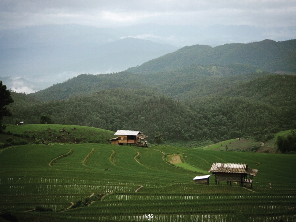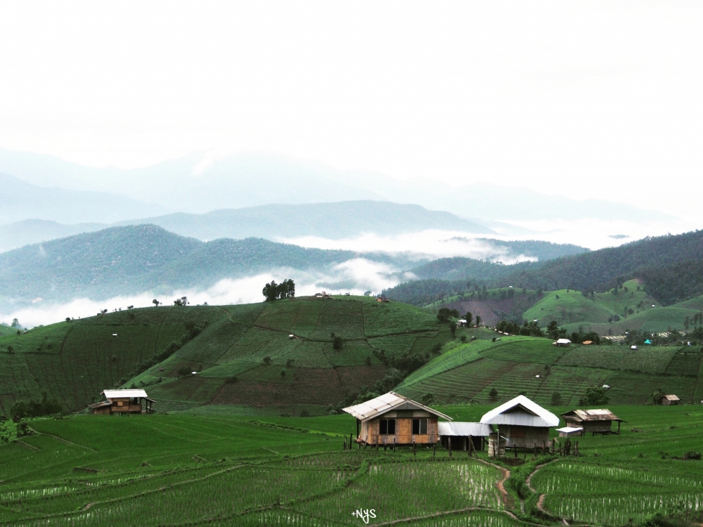 มองไปตรงไหนก็เห็นแต่นาขั้นบันไดที่เขียวขจีและกระท่อมหลังน้อยๆ