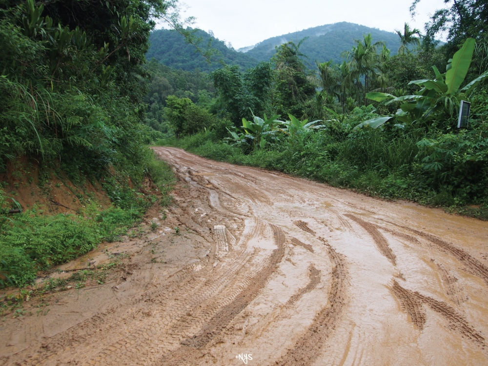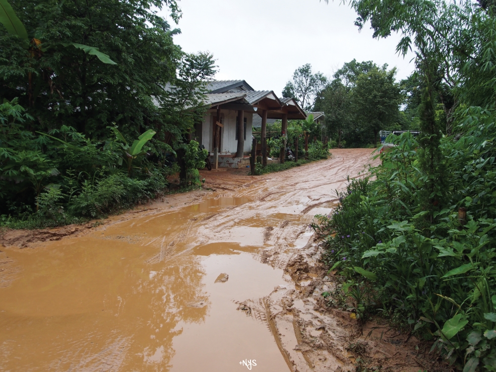 เส้นทางค่อนข้างขรุขระและมีน้ำขังจากฝนตก รถเรารถติดหล่มไปแล้ว ยังดีที่เราใช้รถ 4X4 ขึ้นไป