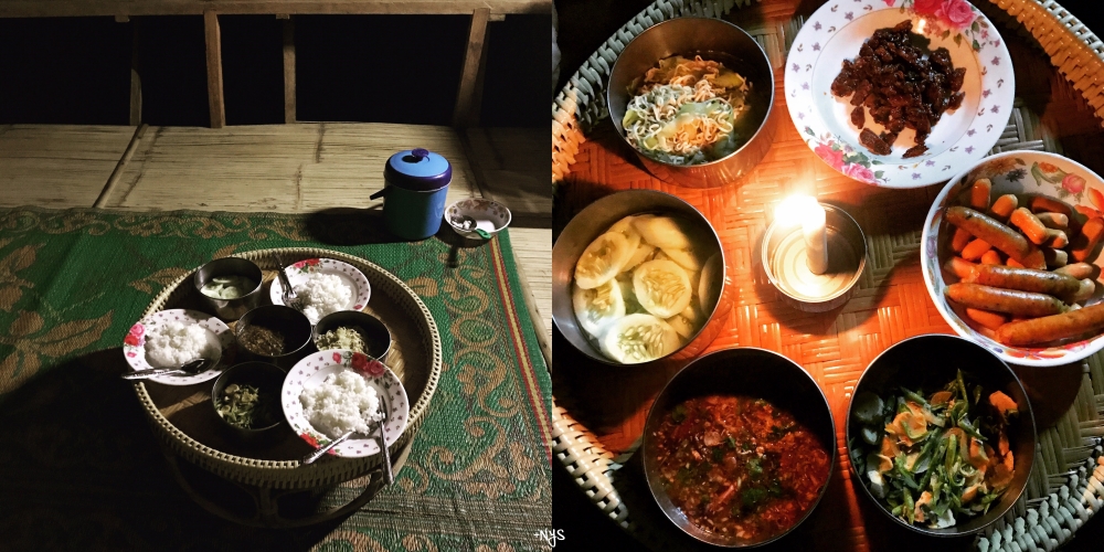 เรามาถึงที่บ้านป่าบงเปียงค่อนข้างเย็น สักพักก็ค่ำ จะได้ยินเสียงกบเสียงเขียดและเสียงจิ้งหลีดร้องตลอดทั้งคืน อาหารที่บ้านพักก็เป็นอาหารที่เรียบง่ายแบบชาวบ้านๆ ซึ่งเราก็ต้องจุดเทียนและส่องไฟฉายทานข้าวกัน ที่บ้านป่าบงเปียงยามค่ำคืนจะไม่มีไฟฟ้า ไม่มีพัดลม มีแค่กระท่อมหลังน้อยๆกับผ้าห่มและหมอนมาให้ แต่บรรยากาศที่นี้จะค่อนข้างเย็นสบาย ไม่จำเป็นต้องเปิดพัดลมกันเลย