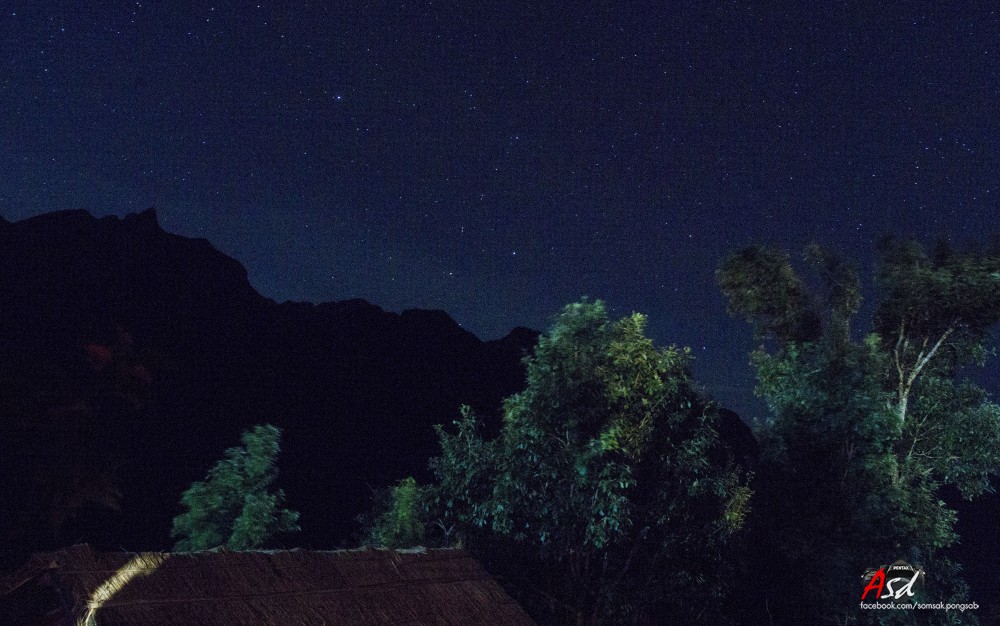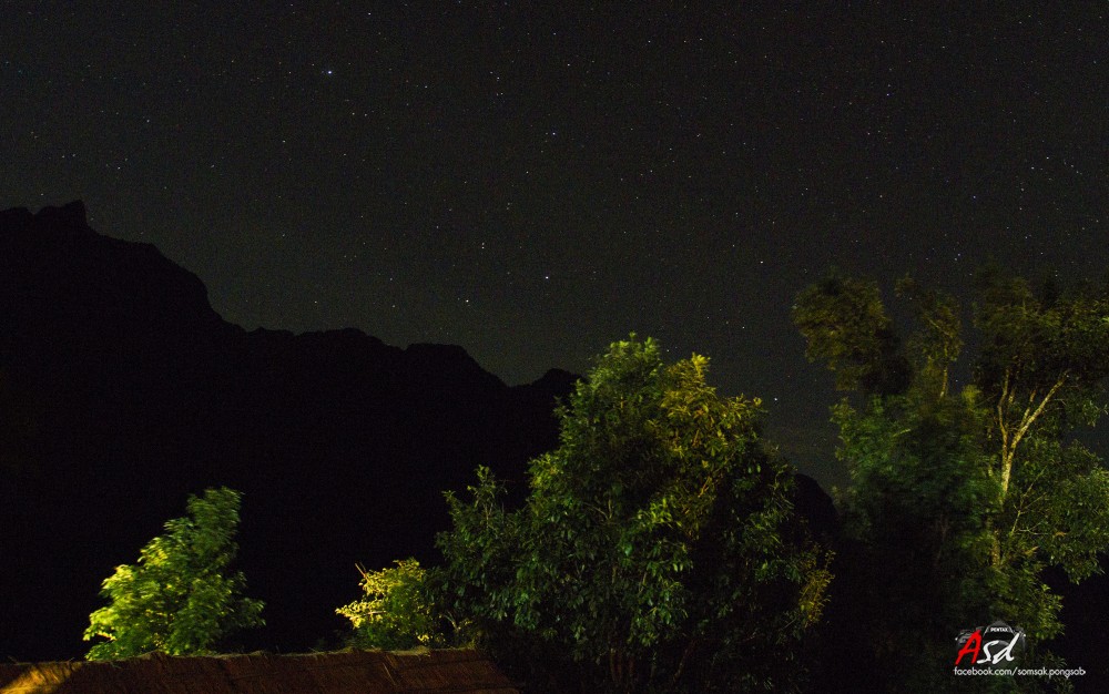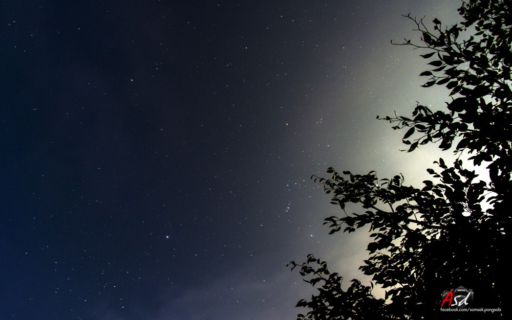 เด็กหลับหมดแล้ว คุณพ่อก็ออกมาถ่ายน้องดาว อากาศเย็นๆ สิบกว่าองศาได้ น้องดาวไม่มากเพราะมีพระจันทร์ค้างฟ้าอยู่มุมนึง ก็ได้มานิดหน่อย