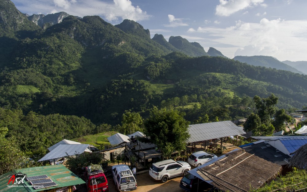 ขับรถมาตามทางแคบๆ ขึ้นเขาต้องระมัดระวัง ถึงโค้งต้องบีบแตรให้สัญญานกันด้วยนะครับ เพราะแต่ละโค้งแคบมาก แต่ทางดีลาดด้วยซีเมนต์ แล้วเราก็มาจนถึงที่พักบ้านวิวดอยหลวงกัน
