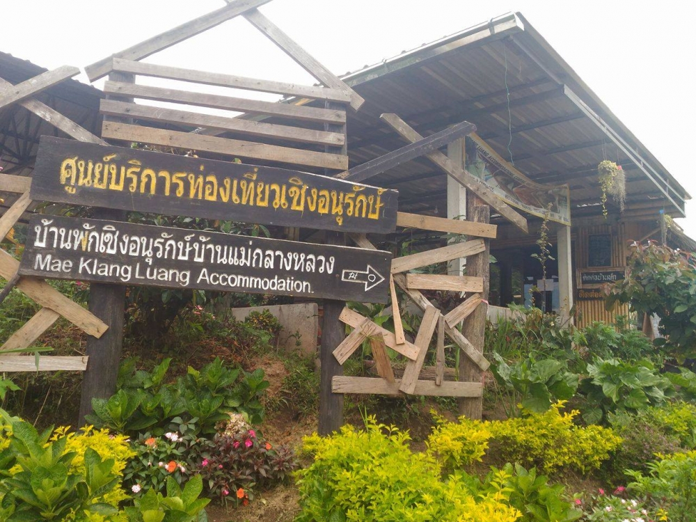 รออยู่ชั่วโมงกว่า เพราะรถออกบ่ายโมงครึ่งและคนก็เต็มรถพอดี นั่งรถแม่แจ่มมาลงที่ กม. 26 ตรงนัั้นมีศาลารอรถพอดี มีทางเดินลงไปเข้าสู่หมู่บ้าน เป็นทางลาดชันมากๆ แต่พอเดินได้ ด่านแรกที่เจอเป็นศูนย์บริการท่องเที่ยวเชิงอนุรักษ์