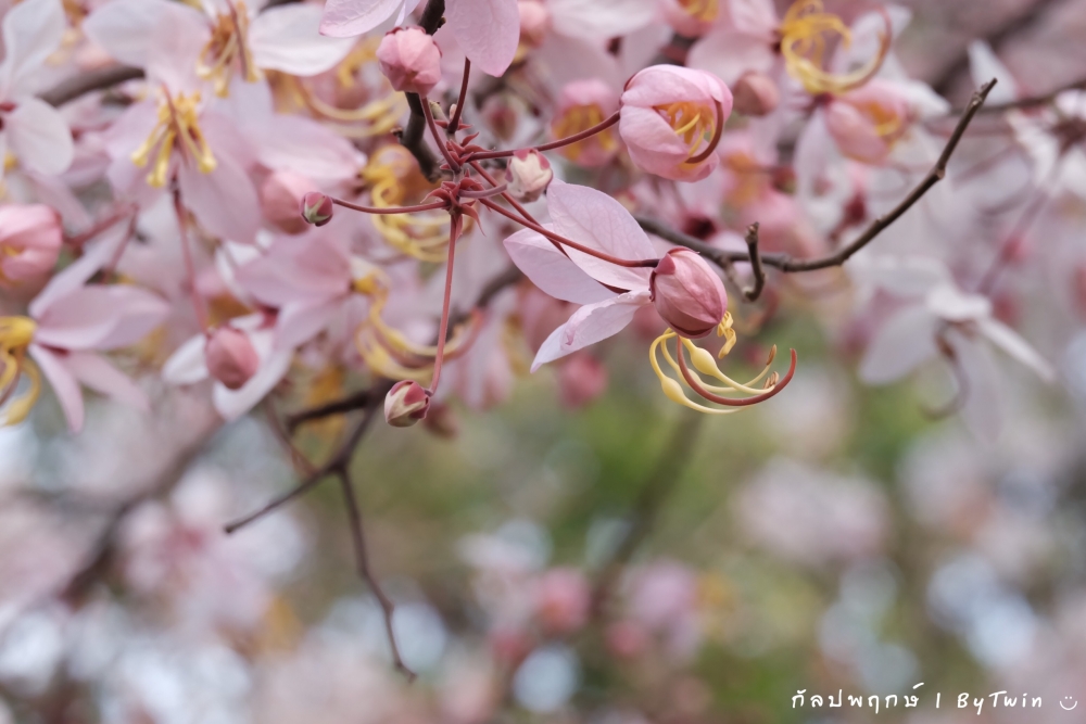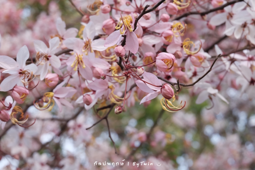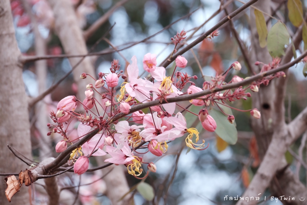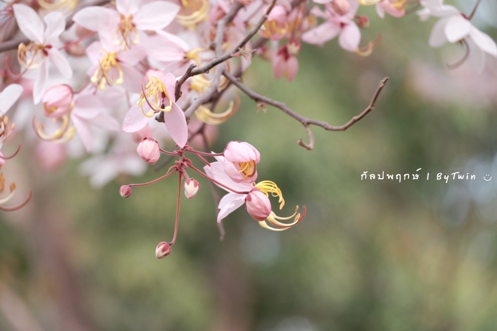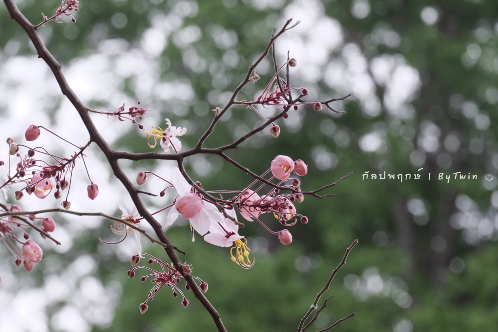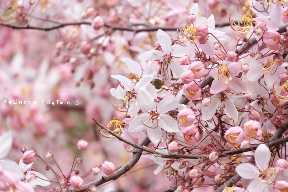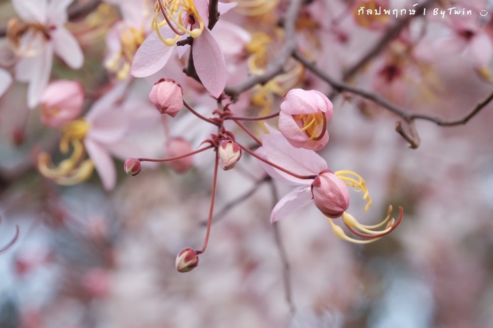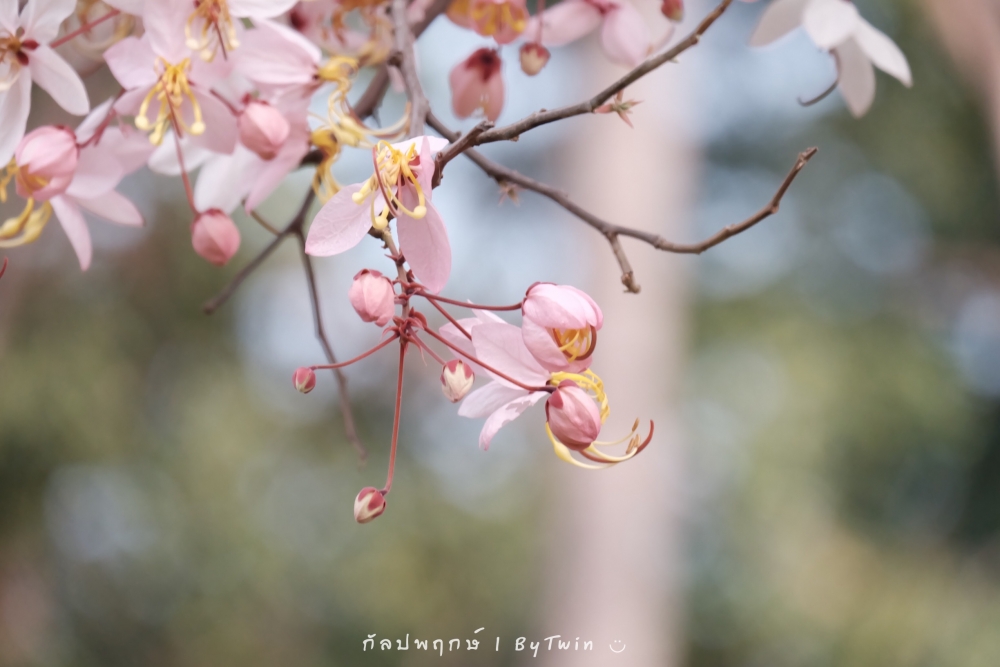"ดอกกัลปพฤกษ์" ดอกไม้ประจำมหาวิทยาลัยขอนแก่น กำลังชูช่อดอกใบ ออกดอกบานสะพรั่ง อวดความงาม สีชมพู อย่างสวยงาม...