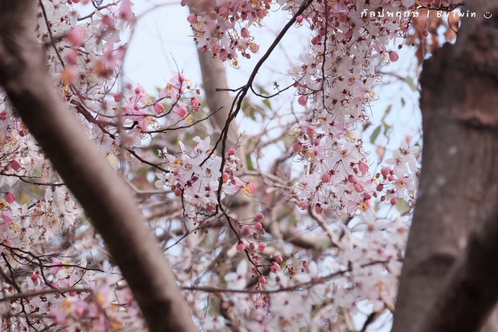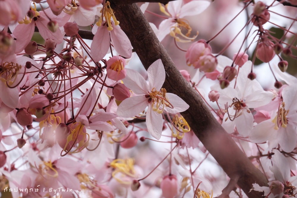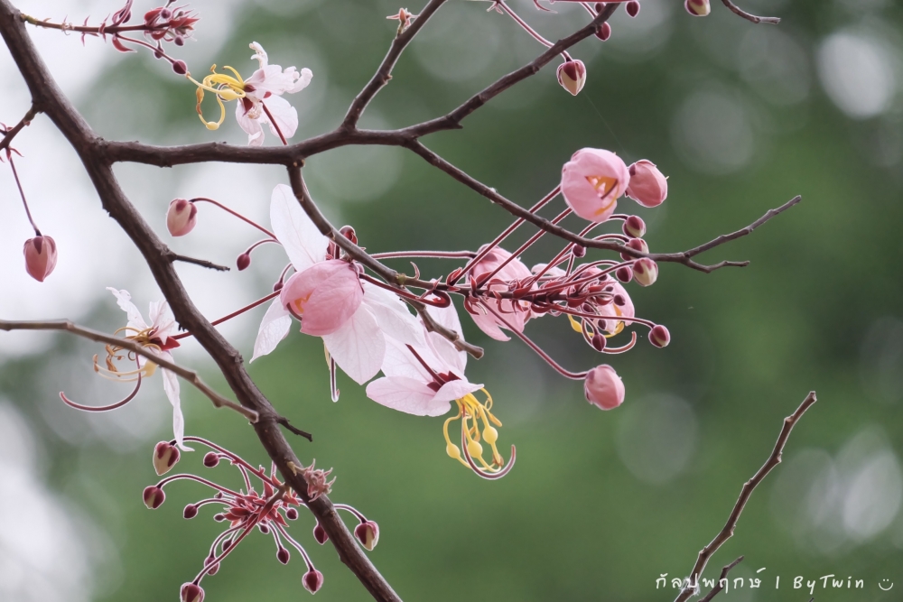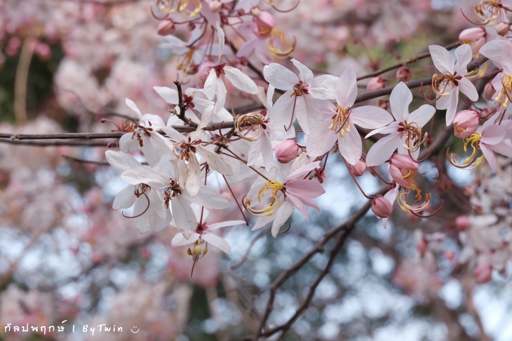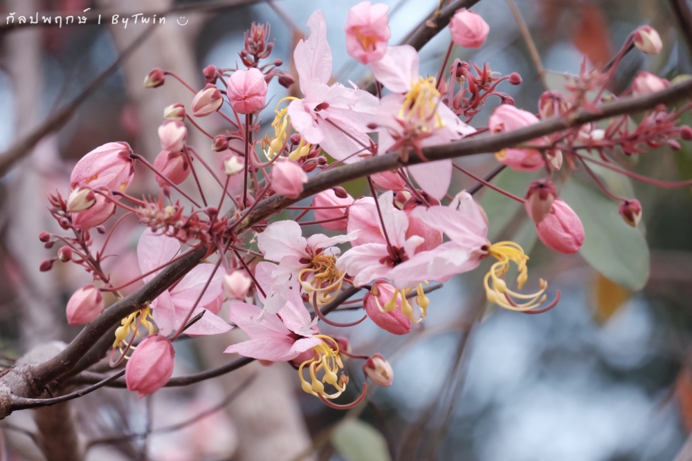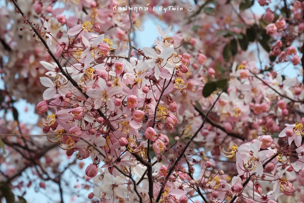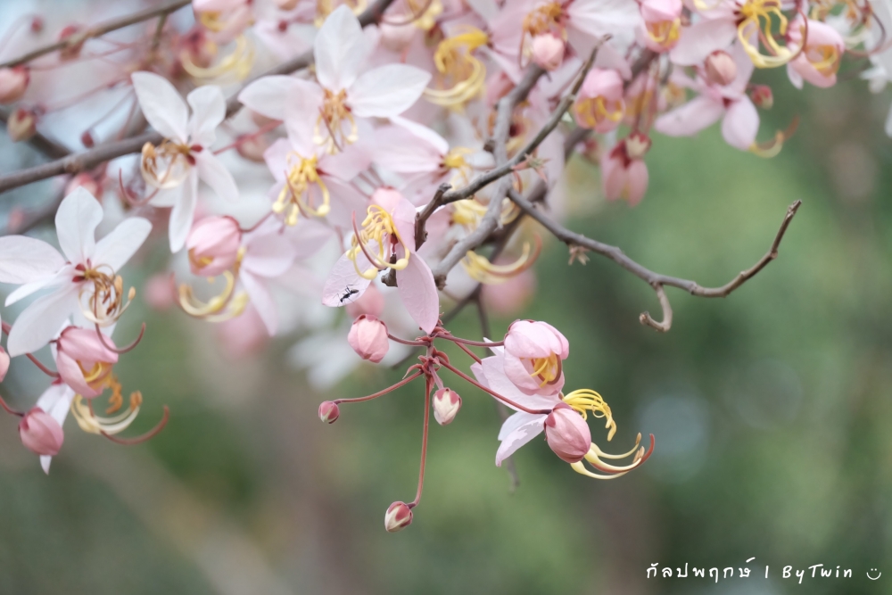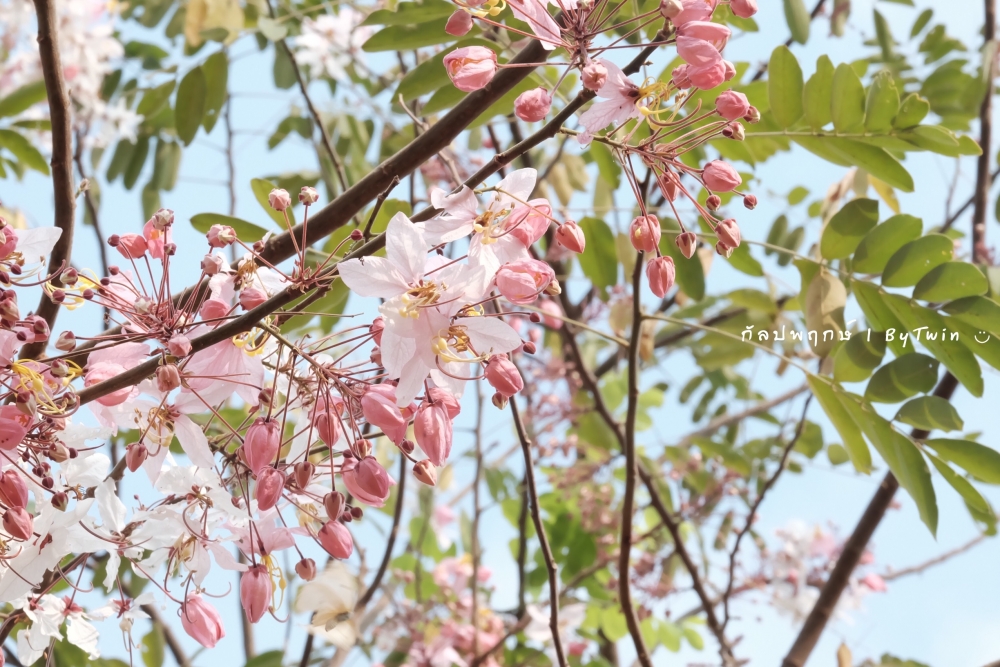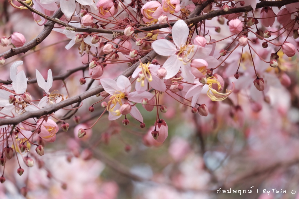 "ดอกกัลปพฤกษ์" ดอกไม้ประจำมหาวิทยาลัยขอนแก่น กำลังชูช่อดอกใบ ออกดอกบานสะพรั่ง อวดความงาม สีชมพู อย่างสวยงาม...