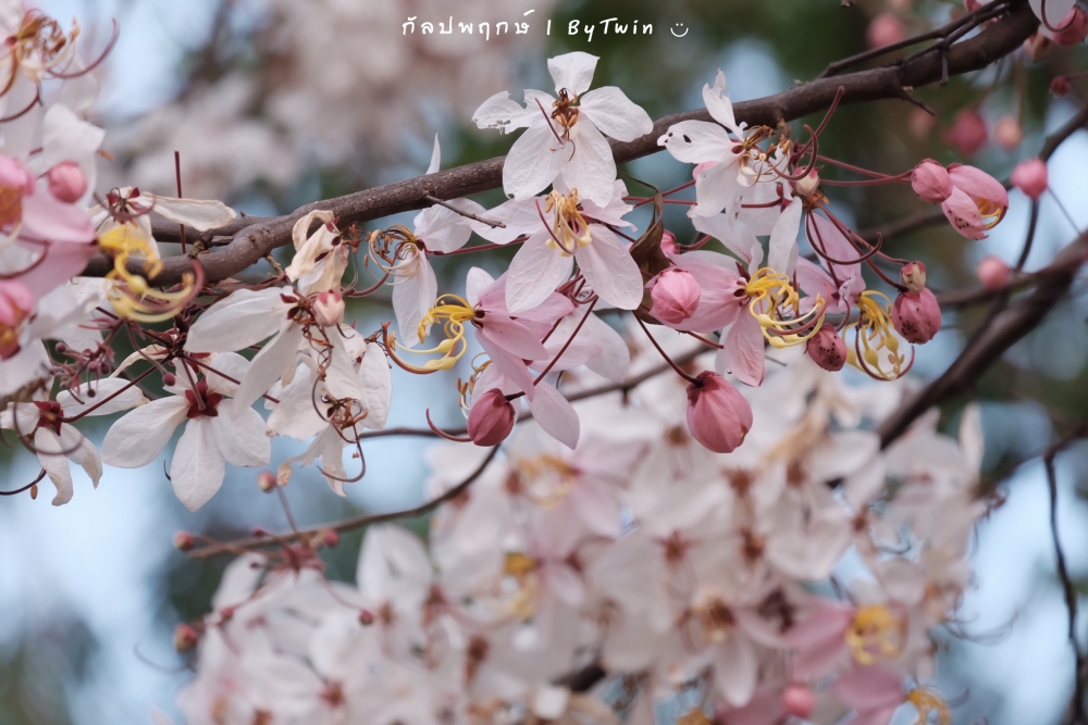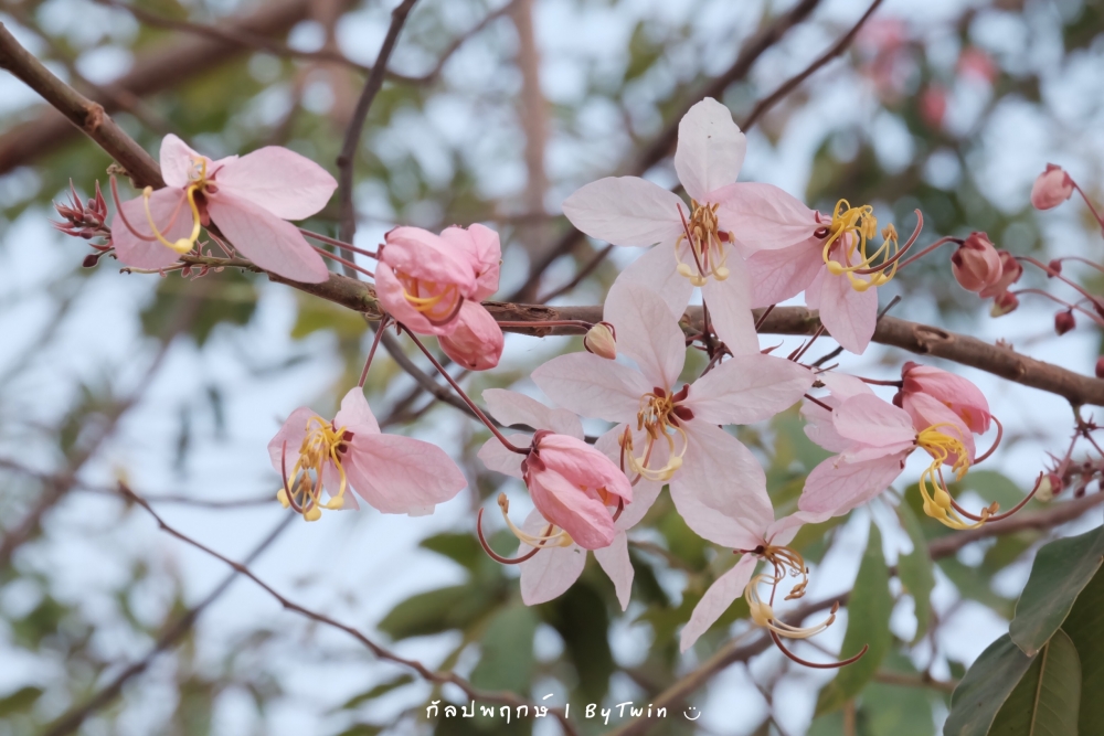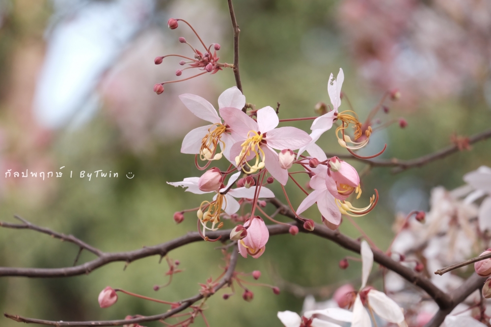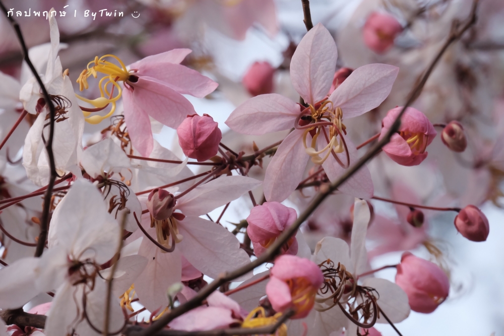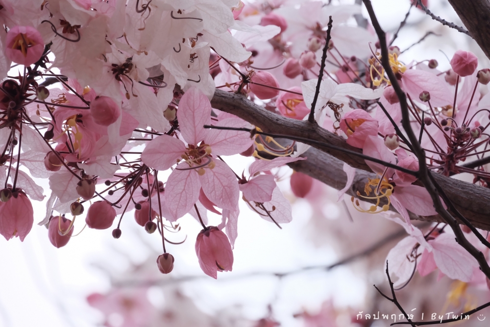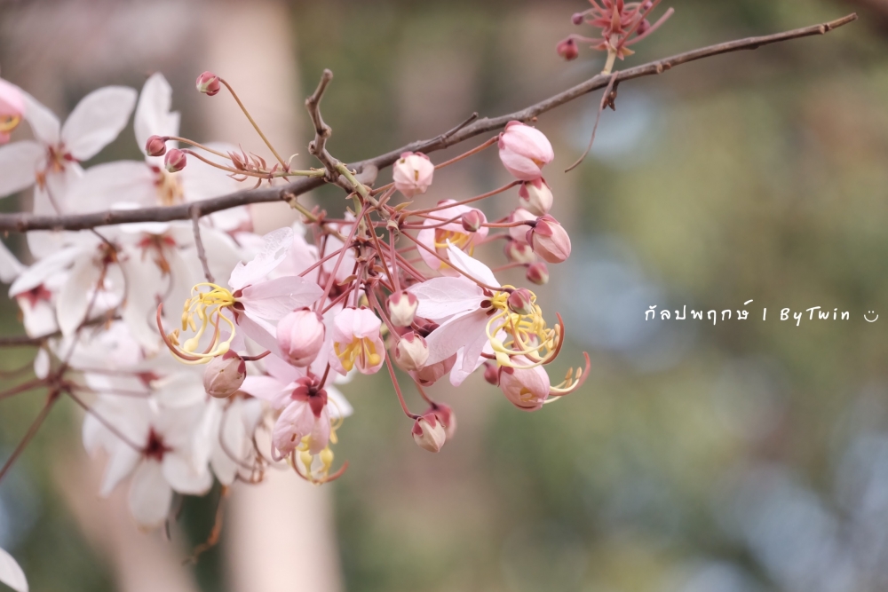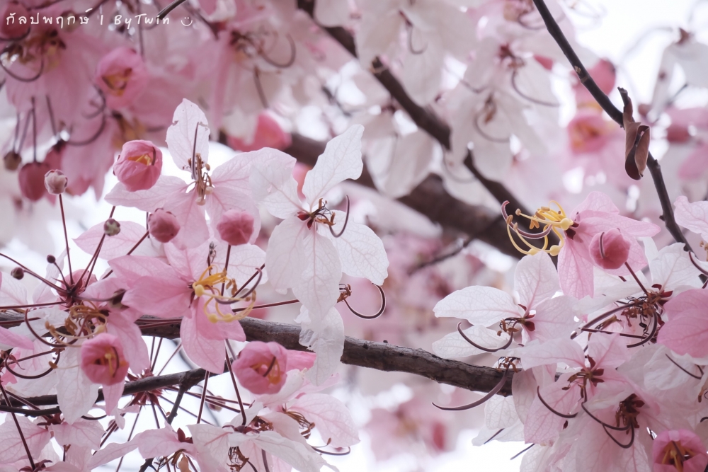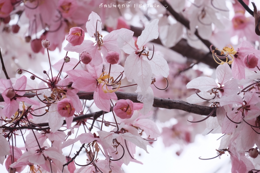 "ดอกกัลปพฤกษ์" ดอกไม้ประจำมหาวิทยาลัยขอนแก่น กำลังชูช่อดอกใบ ออกดอกบานสะพรั่ง อวดความงาม สีชมพู อย่างสวยงาม...