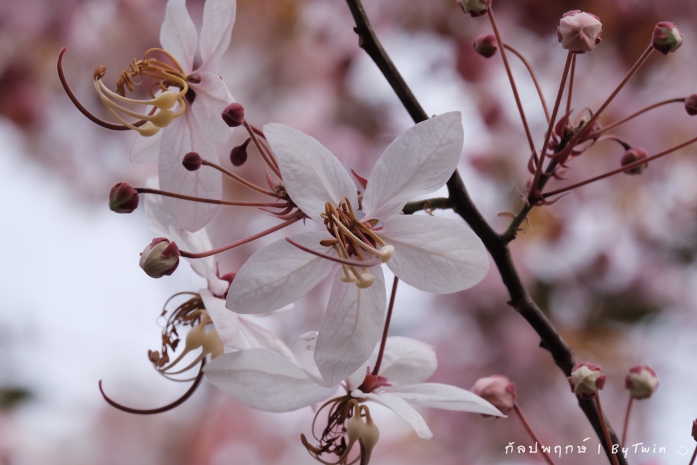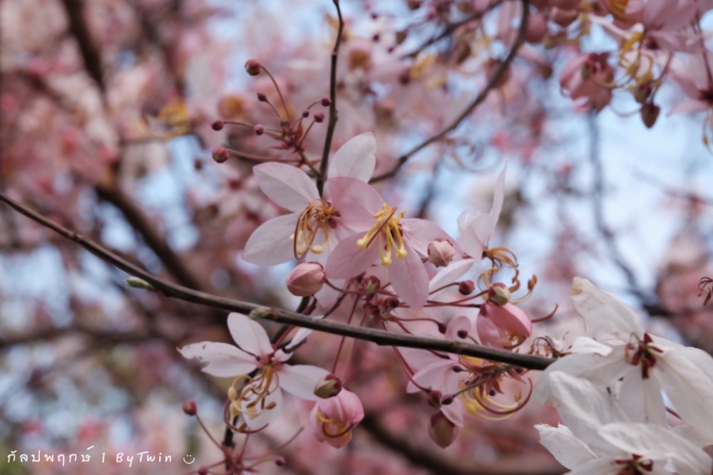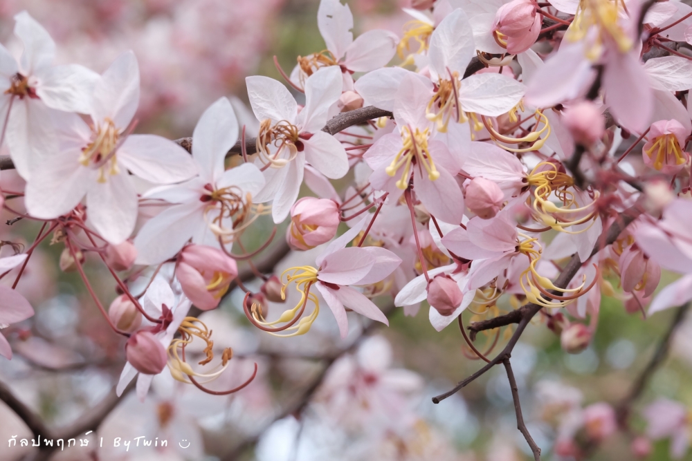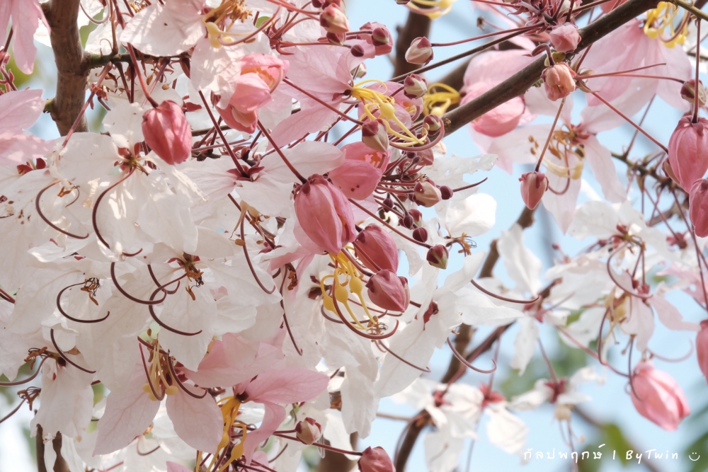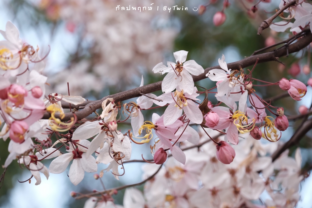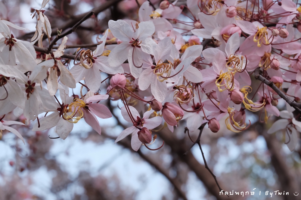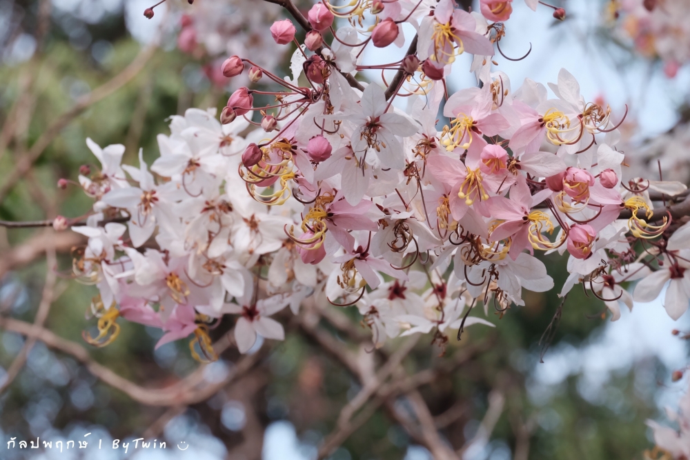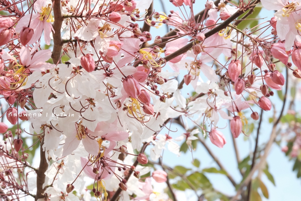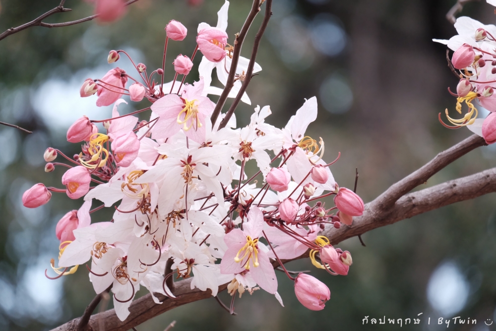 "ดอกกัลปพฤกษ์" ดอกไม้ประจำมหาวิทยาลัยขอนแก่น กำลังชูช่อดอกใบ ออกดอกบานสะพรั่ง อวดความงาม สีชมพู อย่างสวยงาม...
