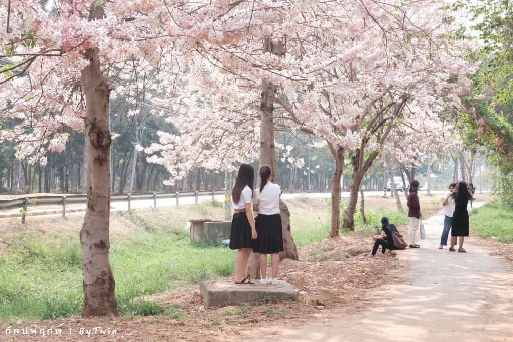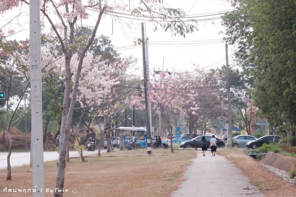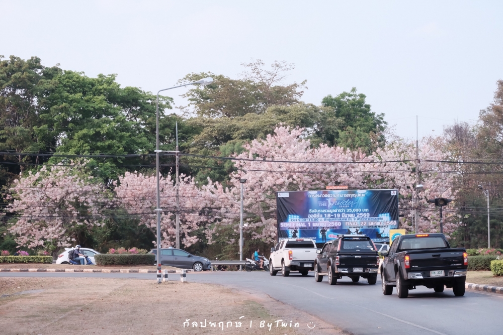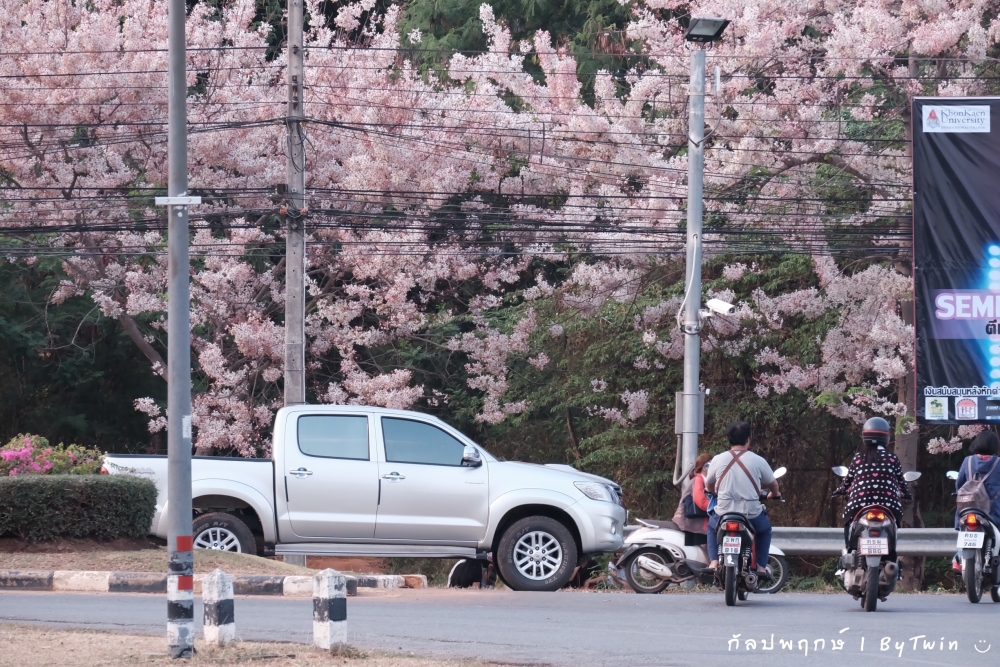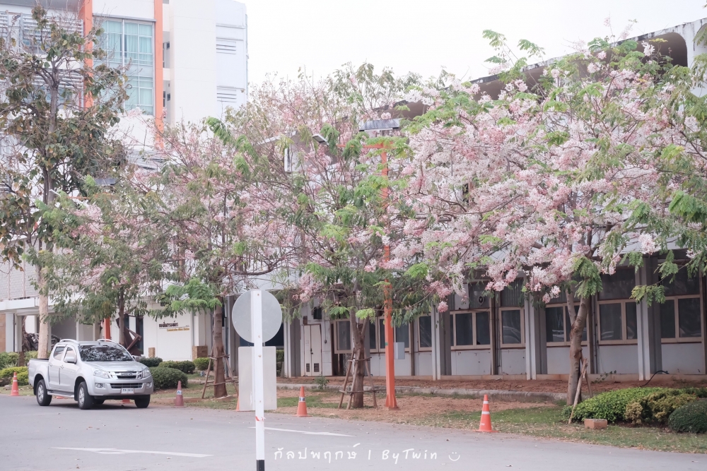 ทั่วถนนเกือบทุกสายของมหาวิทยาลัยขอนแก่น อาคารหน่วยงาน บริเวณคณะ หอพัก โรงอาาร อาคารต่างๆ จะถูกรายล้อมไปด้วยสีชมพูจากดอก "กัลปพฤกษ์" ซึ่งบานสะพรั่งงดงามตาอย่างมาก...