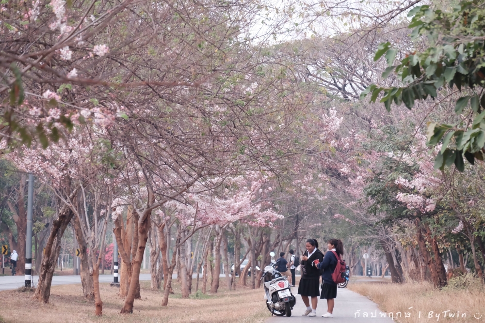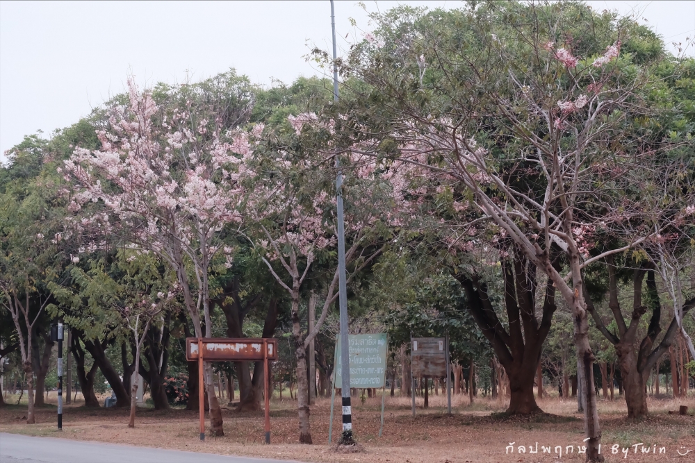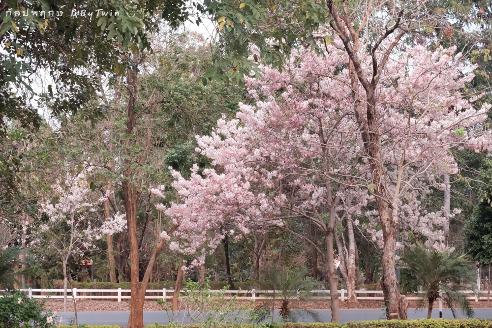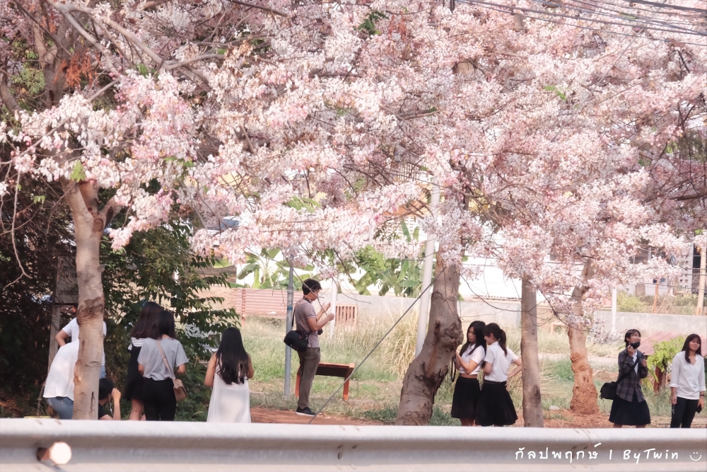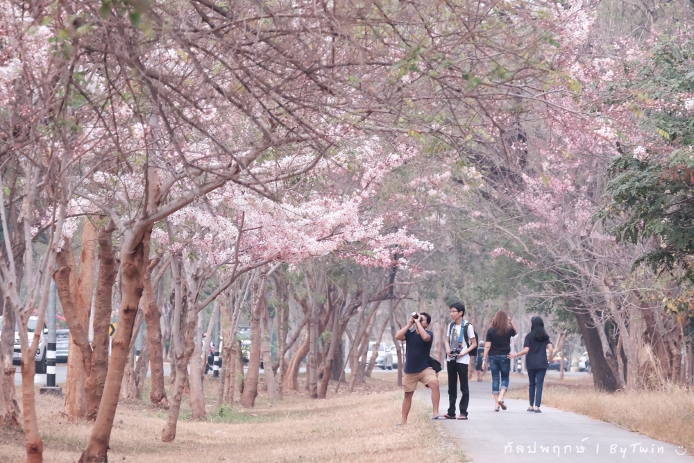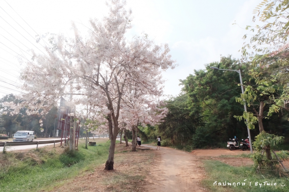 ทั่วถนนเกือบทุกสายของมหาวิทยาลัยขอนแก่น อาคารหน่วยงาน บริเวณคณะ หอพัก โรงอาาร อาคารต่างๆ จะถูกรายล้อมไปด้วยสีชมพูจากดอก "กัลปพฤกษ์" ซึ่งบานสะพรั่งงดงามตาอย่างมาก...