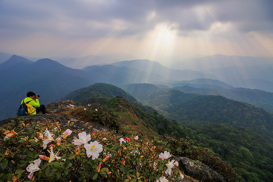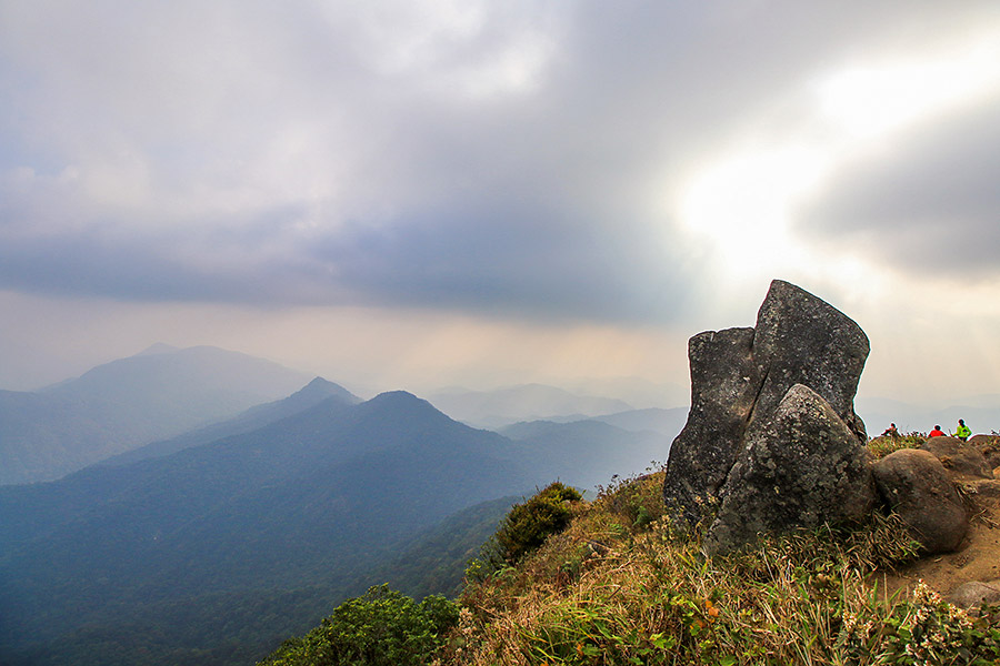 บนยอดโมโกจูมีพื้นที่ให้เราเดินตามแนวสันเขาพอประมาณ พวกเราแต่ละคนถ่ายรูปกันไป ชมวิวอิ่มเอมกับบรรยากาศกันไป ถึงฟ้าหม่นจะทำให้ไม่ได้เห็นพระอาทิตย์ตกหรือแสงยามเย็นระเบิด แต่เมื่อแลกกับการได้แสงเทพสวยๆ แบบนี้ ผมว่าคุ้มอยู่นะ
