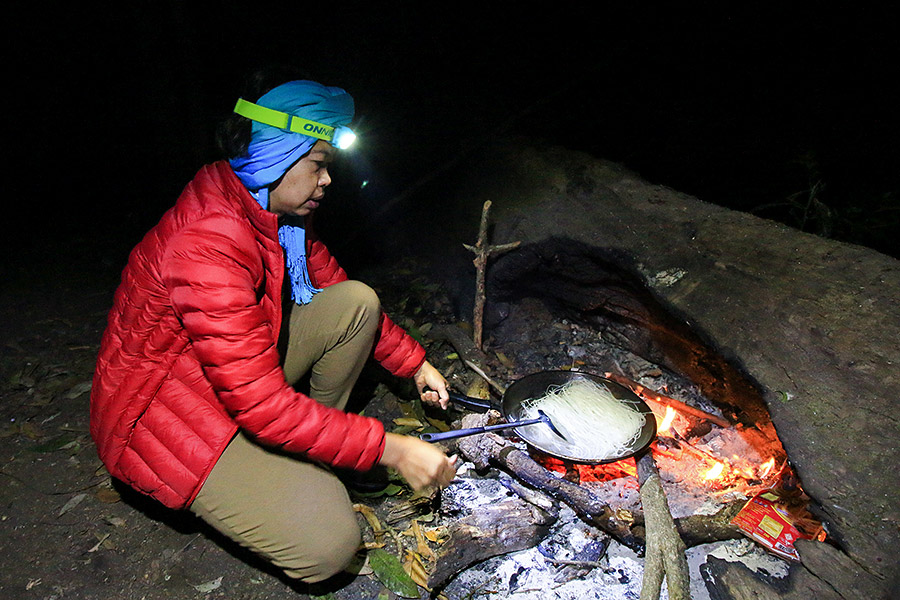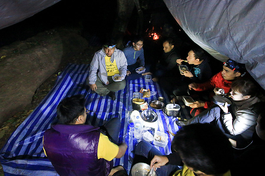 ผมถ่ายภาพสุดท้ายบนโมโกจูตอนหกโมงสิบห้า ลงมาถึงแคมป์ก็มืดสนิทพอดี เพื่อนๆ ที่ลงมาก่อนแล้วตระเตรียมอาหารไว้รอเรียบร้อยเลยจัดไปเต็มที่อย่าให้เสีย (ฮา...) พอได้เวลาอันสมควรจึงแยกย้ายเข้านอน แต่ละคนหลับตาไม่ทันไรก็สลบเหมือดแล้วล่ะ