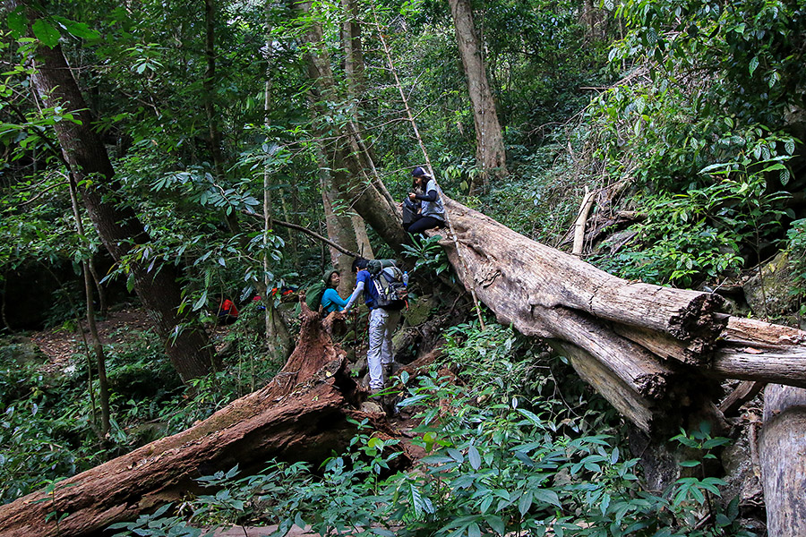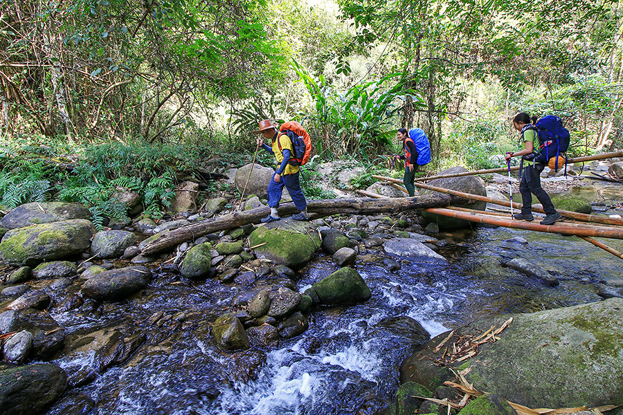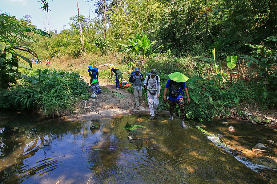 อีกสักสิบห้านาทีเราจะมาถึงคลองสอง เป็นลำธารสุดท้ายก่อนขึ้นแคมป์ตีนดอย กรอกน้ำให้เต็มที่เท่าที่จะแบกไหว แต่ไม่ต้องเยอะเกินไปนะครับเพราะลูกหาบจะเป็นคนจัดการเอาขึ้นไปให้เราพอสมควรอยู่แล้ว