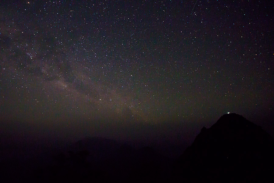 ตั้งนาฬิกาปลุกตีสี่ครึ่ง ตื่นมาเตรียมกล้องเตรียมของแป๊บเดียวแล้วส่องไฟฉายเดินขึ้นยอดทันที เพื่อนบางคนขึ้นไปดูดาวบนหินเรือใบก่อนแล้ว แต่ผมไม่ไปหินเรือใบหรอกครับ เพราะภาพอยากได้ที่คิดไว้ในหัวคือยอดโมโกจูแบบไกลๆ กลางหมู่ดาวและทางช้างเผือกมากกว่า
