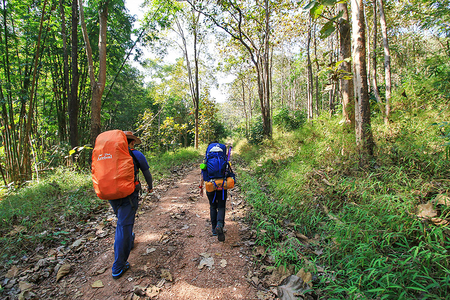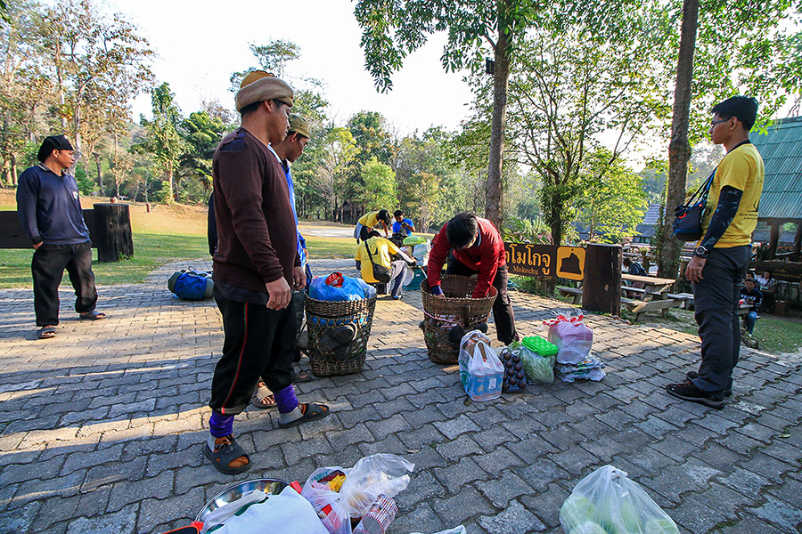 ทั้งสองกลุ่มเดินไล่ไปพร้อมกัน มีเจ้าหน้าที่ดูแลรวมกันสี่คน เฉพาะกลุ่มเรามีลูกหาบสามคน แบกคนละ20 กิโลกรัม แต่เพราะแม่ครัวเตรียมของกินกันหรูหรานิดหน่อยน้ำหนักเลยทะลัก ก็เป็นหน้าที่ของผู้ชายล่ะครับต้องเฉลี่ยกันมาทำให้น้ำหนักแบกหน่วงหน่อยๆ