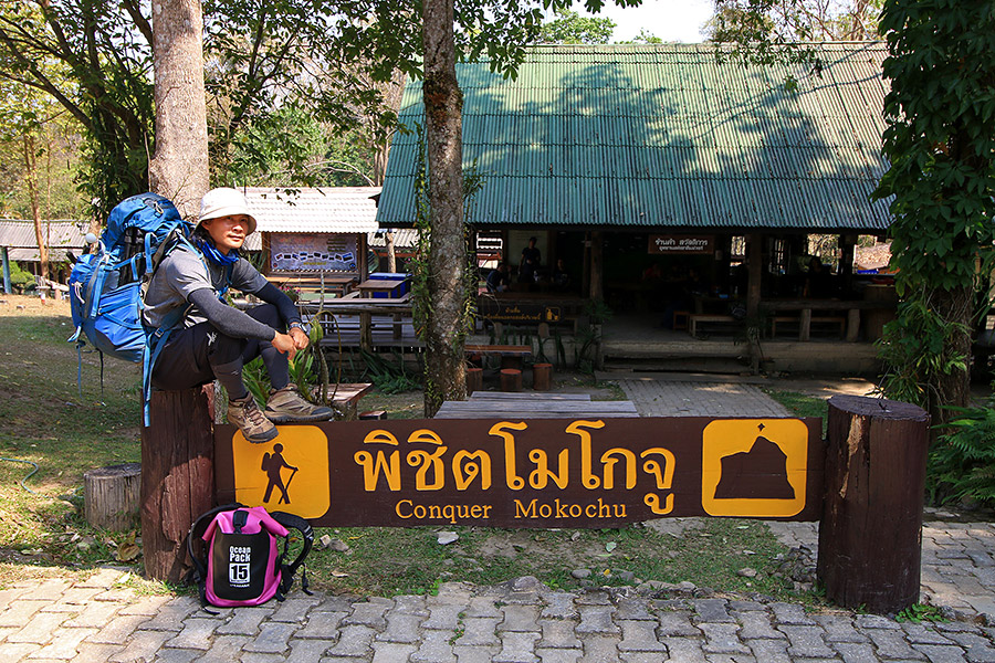 มองนาฬิกาสิบโมงห้านาทีได้เวลาออกตัว จุดเริ่มต้นพิชิตโมโกจูอยู่ตรงป้ายอุทยานแห่งชาติแม่วงก์ใหญ่ๆ ใกล้กับที่ทำการฯ นั่นแหละ พร้อมแล้วลุยโลด