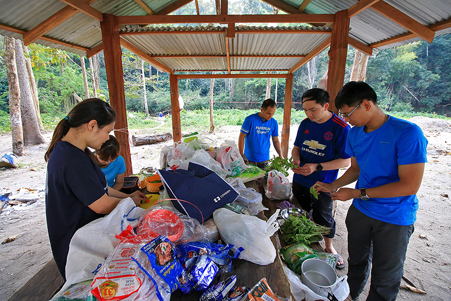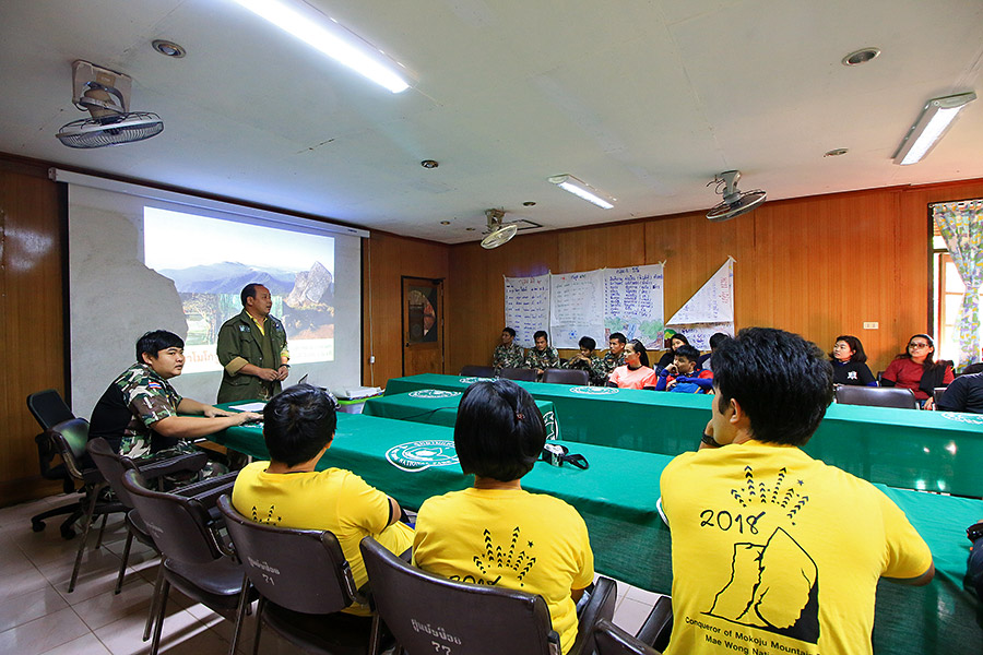 จัดแจงเตรียมข้าวของ กินข้าวร้านสวัสดิการ ก่อนจะเริ่มเดินเราต้องลงทะเบียน เคลียร์ค่าใช้จ่ายต่างๆ และอีกขั้นตอนสำคัญคือฟังบรรยายจากเจ้าหน้าที่ถึงเส้นทางการเดิน กฎระเบียบต่างๆ สิ่งอำนวยความสะดวกที่อุทยานฯ มีให้ และที่เราต้องหากันเอาเอง พูดคุยแบบฮาๆ ไม่ได้ซีเรียสอะไร