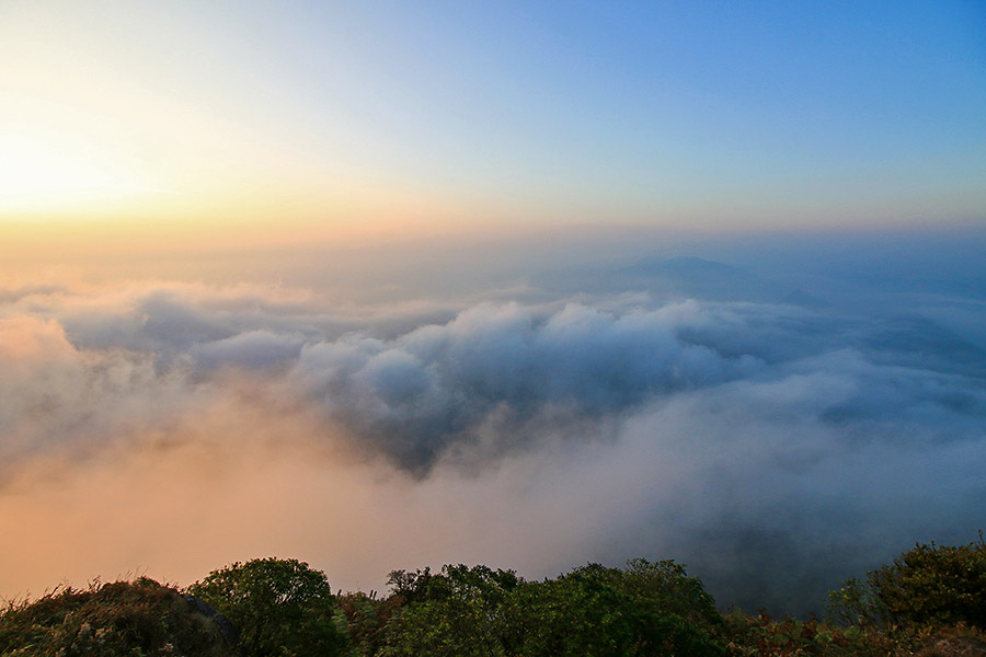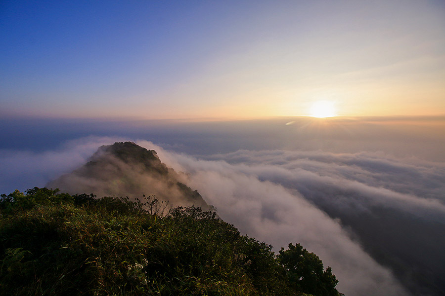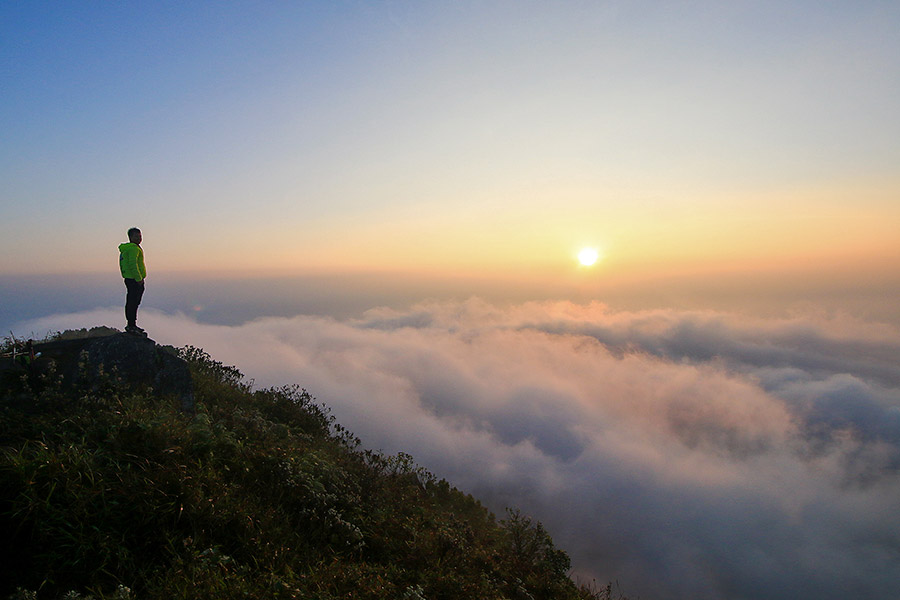 พอฟ้าเริ่มสว่างขึ้นผมค่อยเดินไปยอดโมโกจู สารภาพเลยว่าหลังจากฟ้าหม่นเย็นเมื่อวาน วันนี้ค่อนข้างโล่งใจที่ฟ้าเปิดกระจ่างอีกครั้ง และหลังถ่ายรูปโช้ะแช้ะได้สักพัก สิ่งที่ทุกคนฝันอยากเห็นก็มีเค้าความจริง หมอกขาวเริ่มไหลตามลมผ่านมาทางร่องเขาทุกทิศทุกทาง