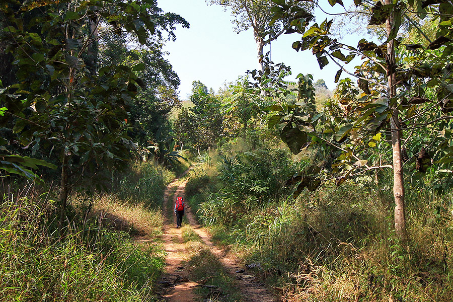 ผมออกจากแคมป์เป็นกลุ่มสุดท้าย เดินตามถนนดินแดงไปเรื่อยๆ เรื่อยๆ เรื่อยๆ แซงคนอื่นบ้าง โดนคนอื่นแซงบ้าง ถอนหายใจและหัวเราะให้กันตามประสา